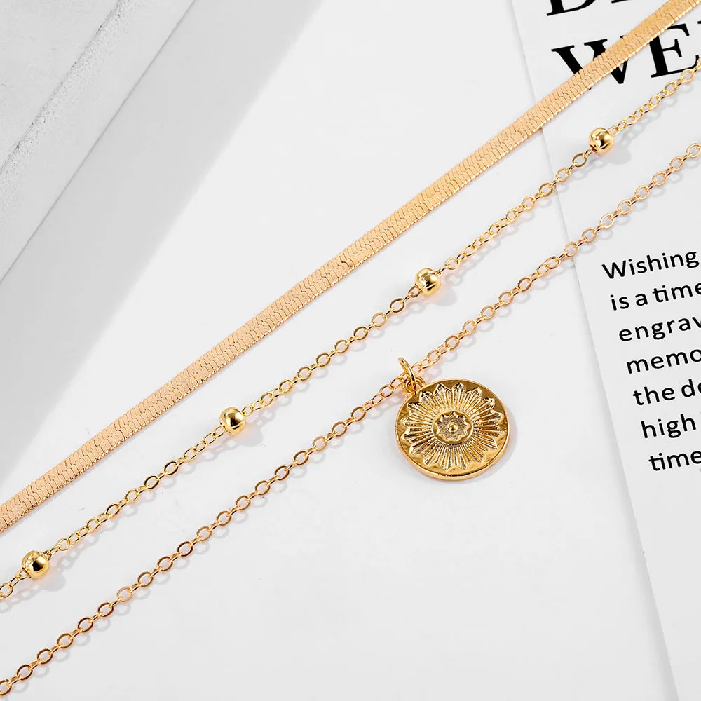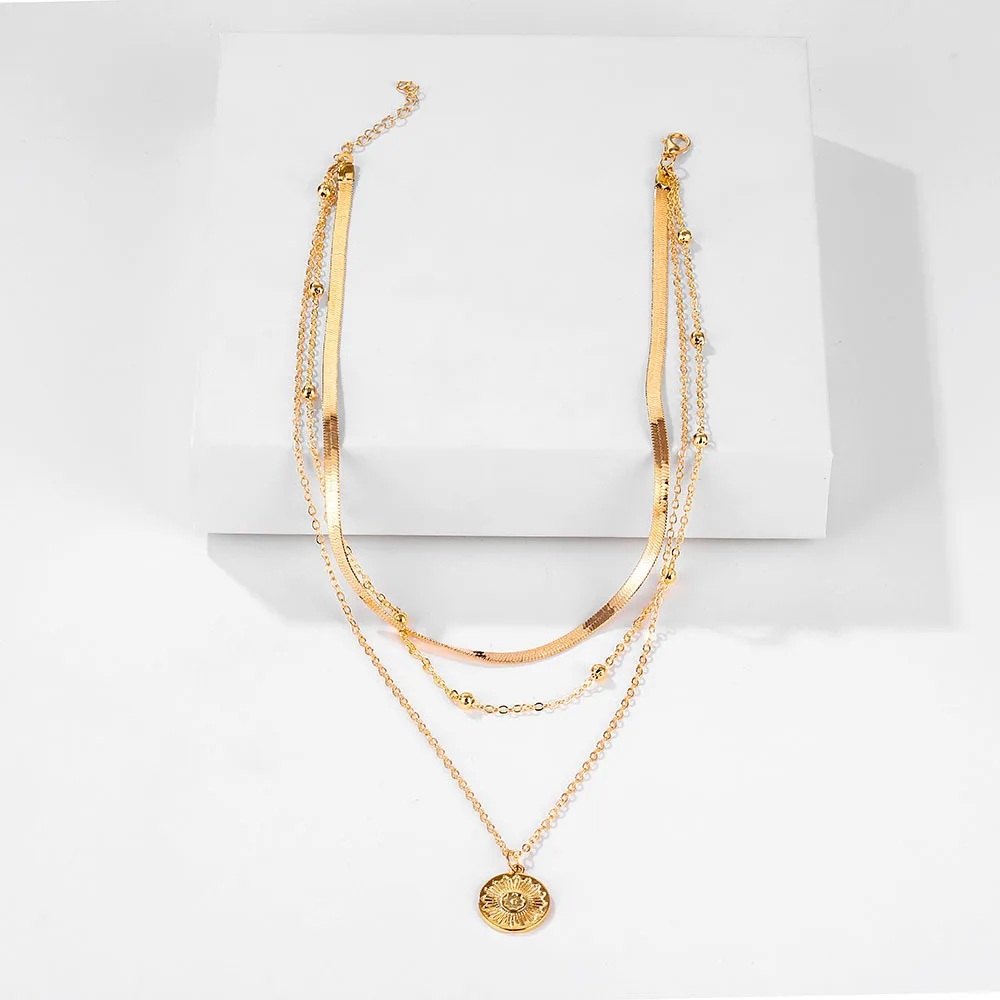Модные многослойные ожерелья, цепочка со змеиным лезвием, ожерелье с подвеской в виде серебряной и золотой монеты, бусины в стиле бохо, ювелирные изделия для женщин и девушек, бижутерия для вечеринки