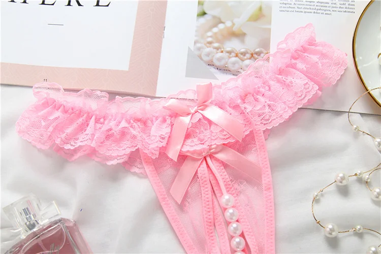 Стринги женские кружевные с жемчугом, ультратонкое нижнее белье