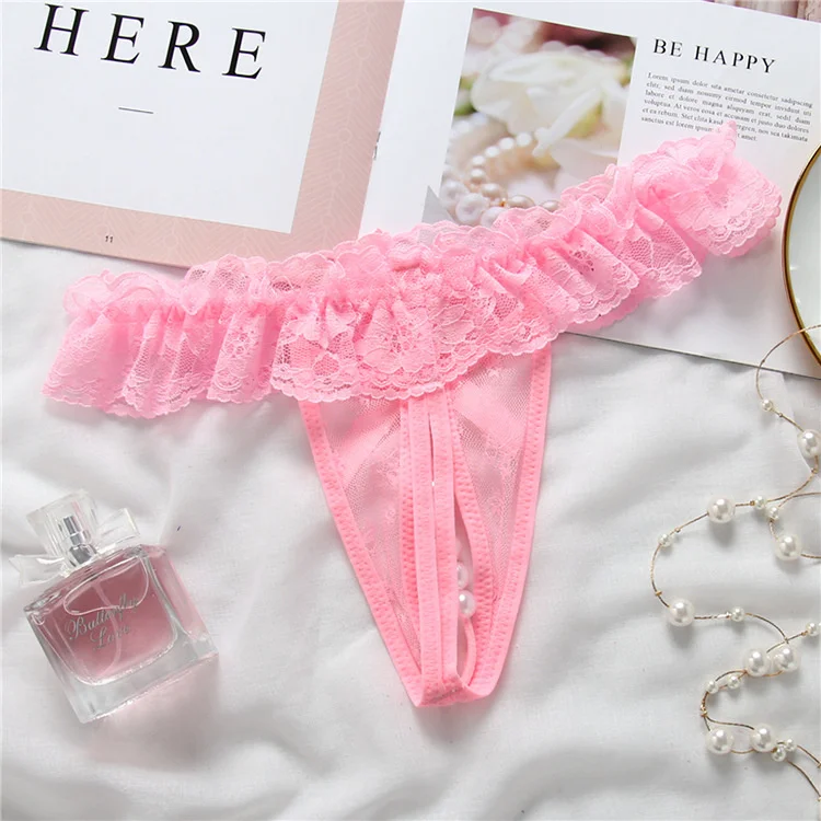 Сексуальные женские кружевные трусики-танга с жемчужной промежность...