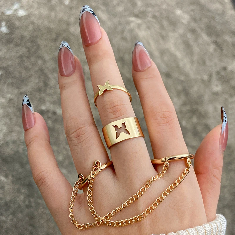 Модные кольца в стиле панк с цепью и бабочкой, многослойные крутые ...