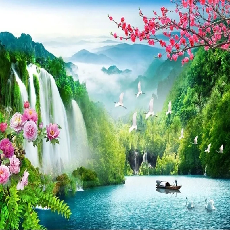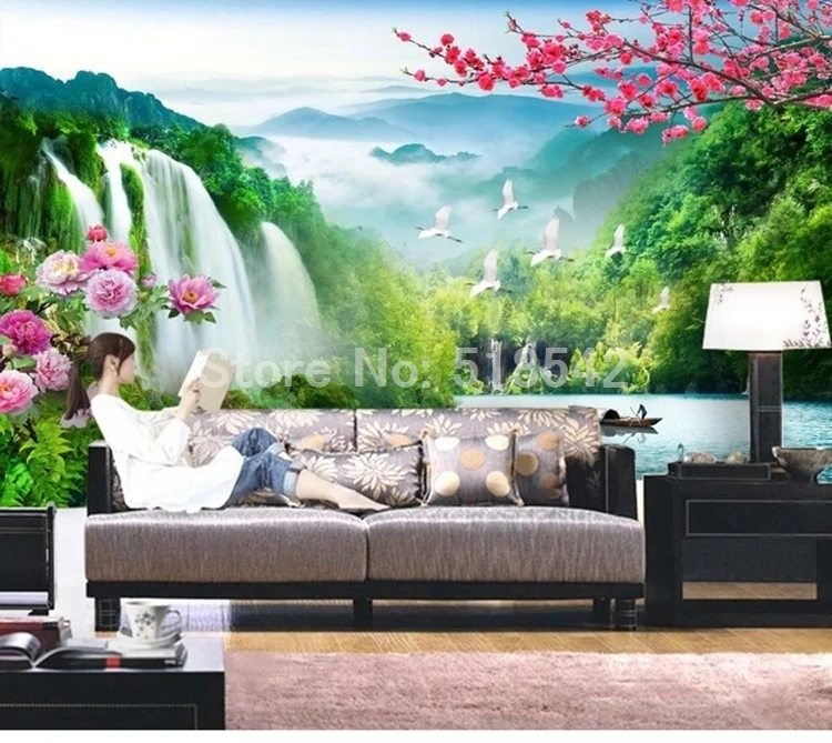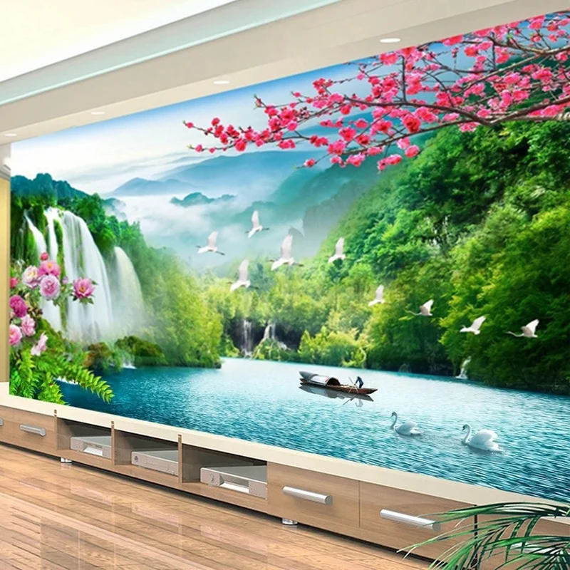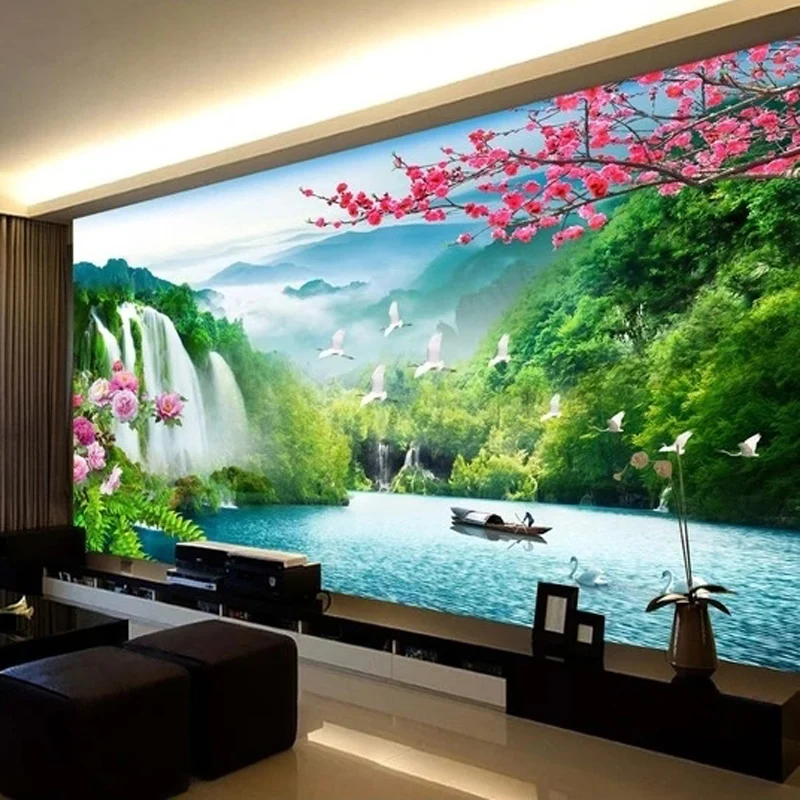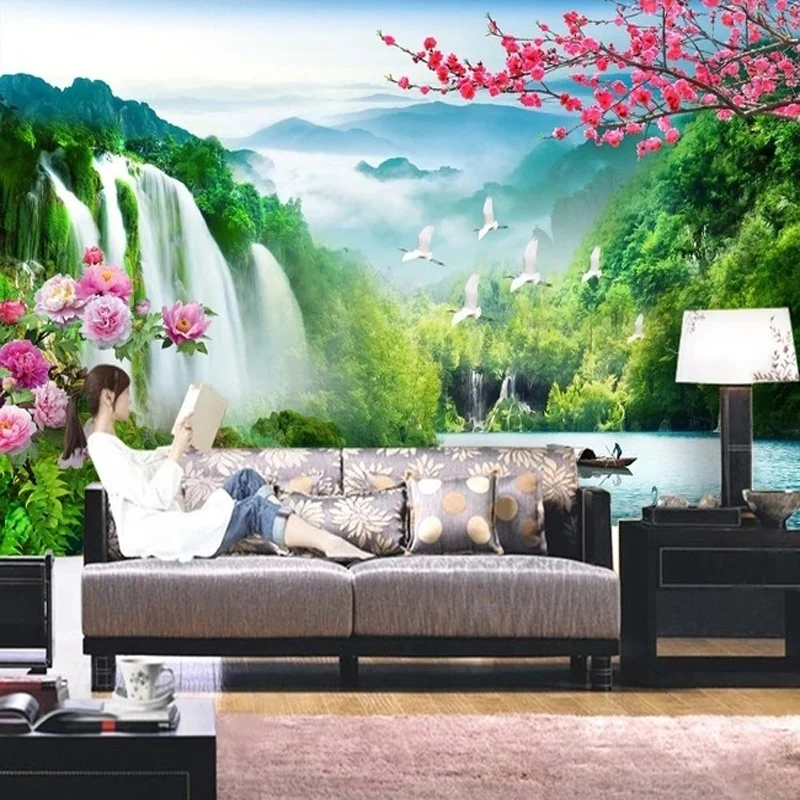 Фотообои на заказ, настенные 3D обои с изображением природного ландшафта, водопада, гор, озера, для спальни, гостиной, телевизора, дивана, декор для стен