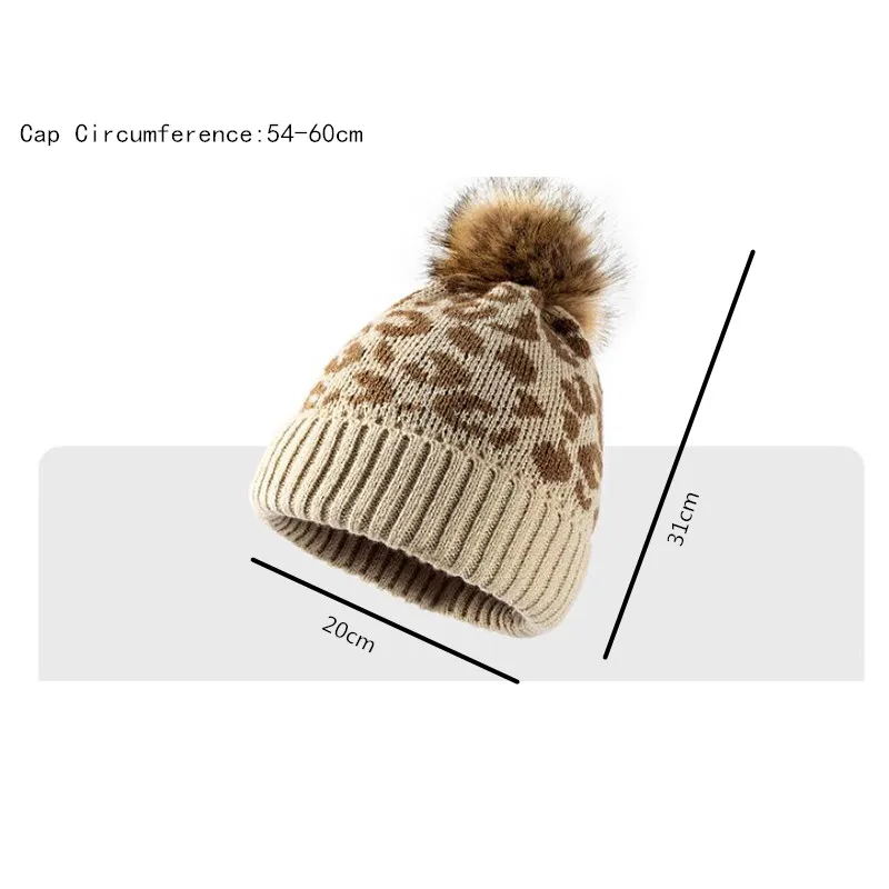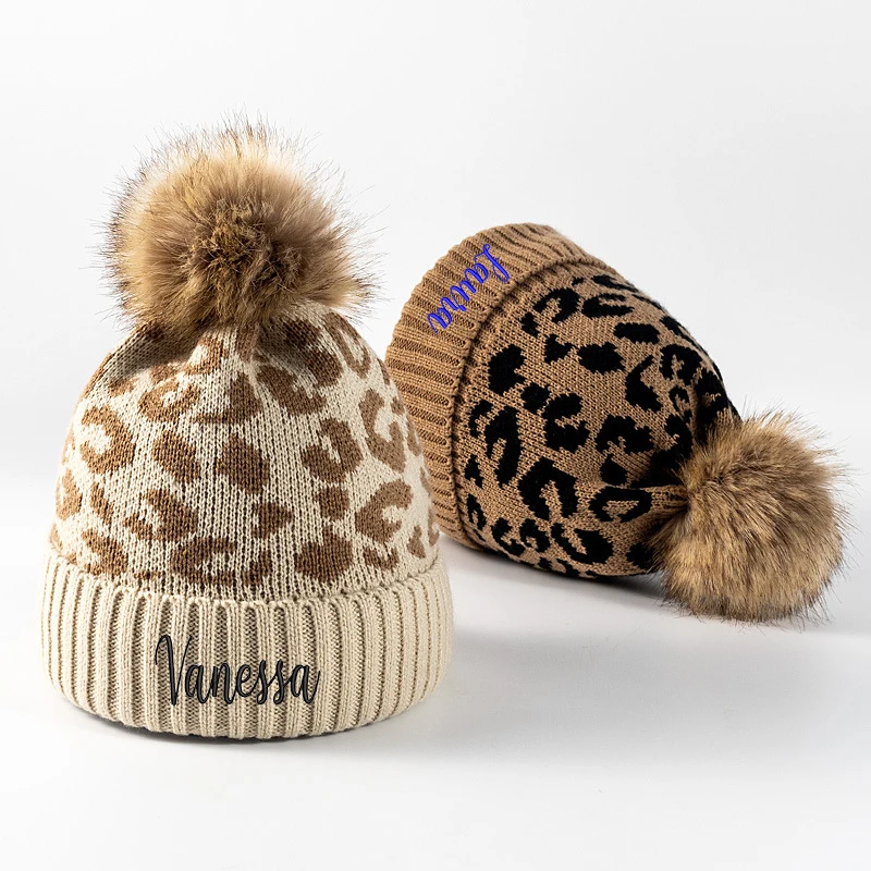 Шапка женская зимняя вязаная с леопардовым принтом, теплая