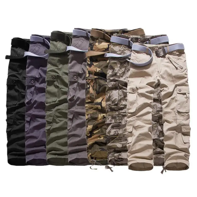 Мужские модные повседневные брюки-карго Four Seasons в стиле сафари с несколькими карманами, уличные хлопковые мужские брюки-карго в стиле хип-хоп