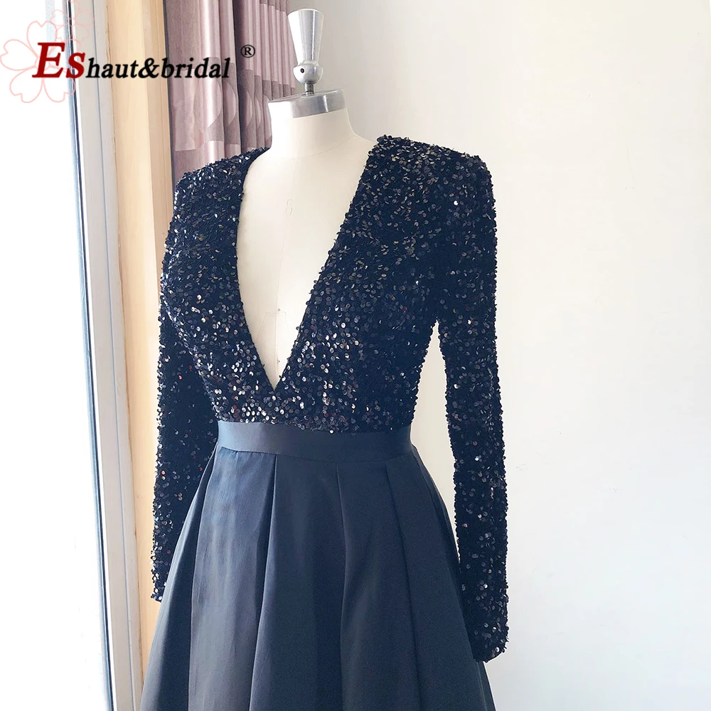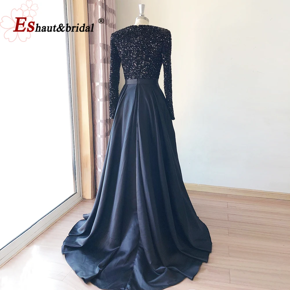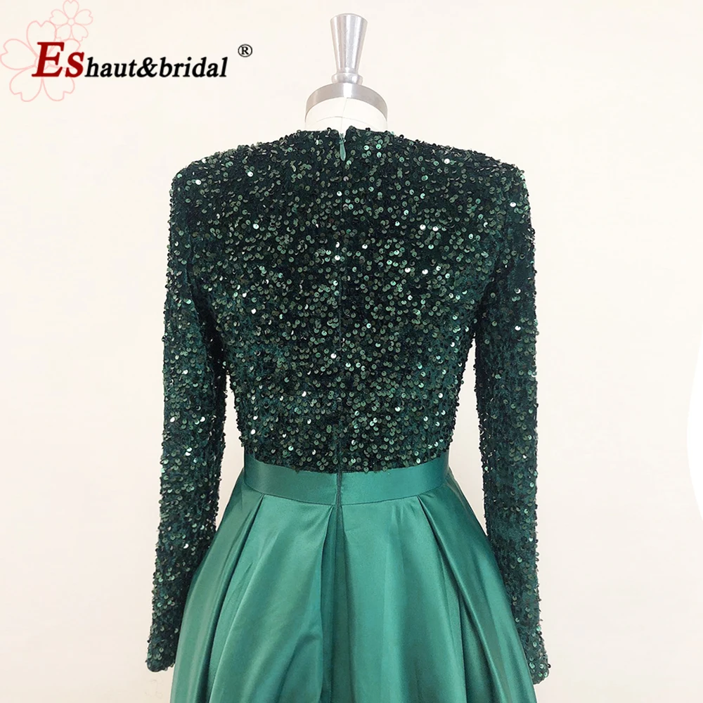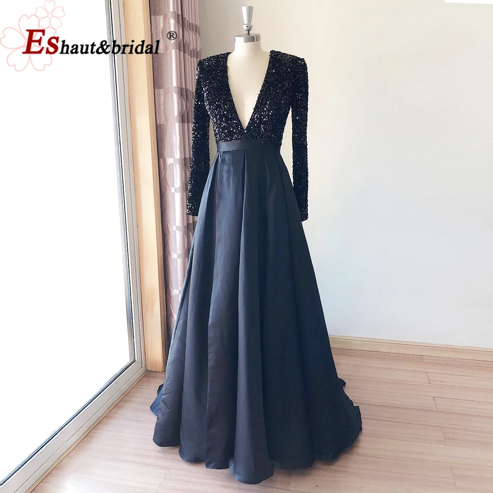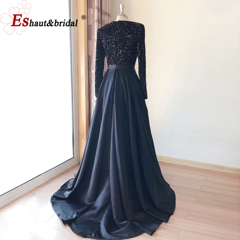 Женские вечерние платья с высоким разрезом, роскошные блестящие вечерние платья с V-образным вырезом и длинными рукавами, бальные платья для выпускного вечера и свадьбы, 2021