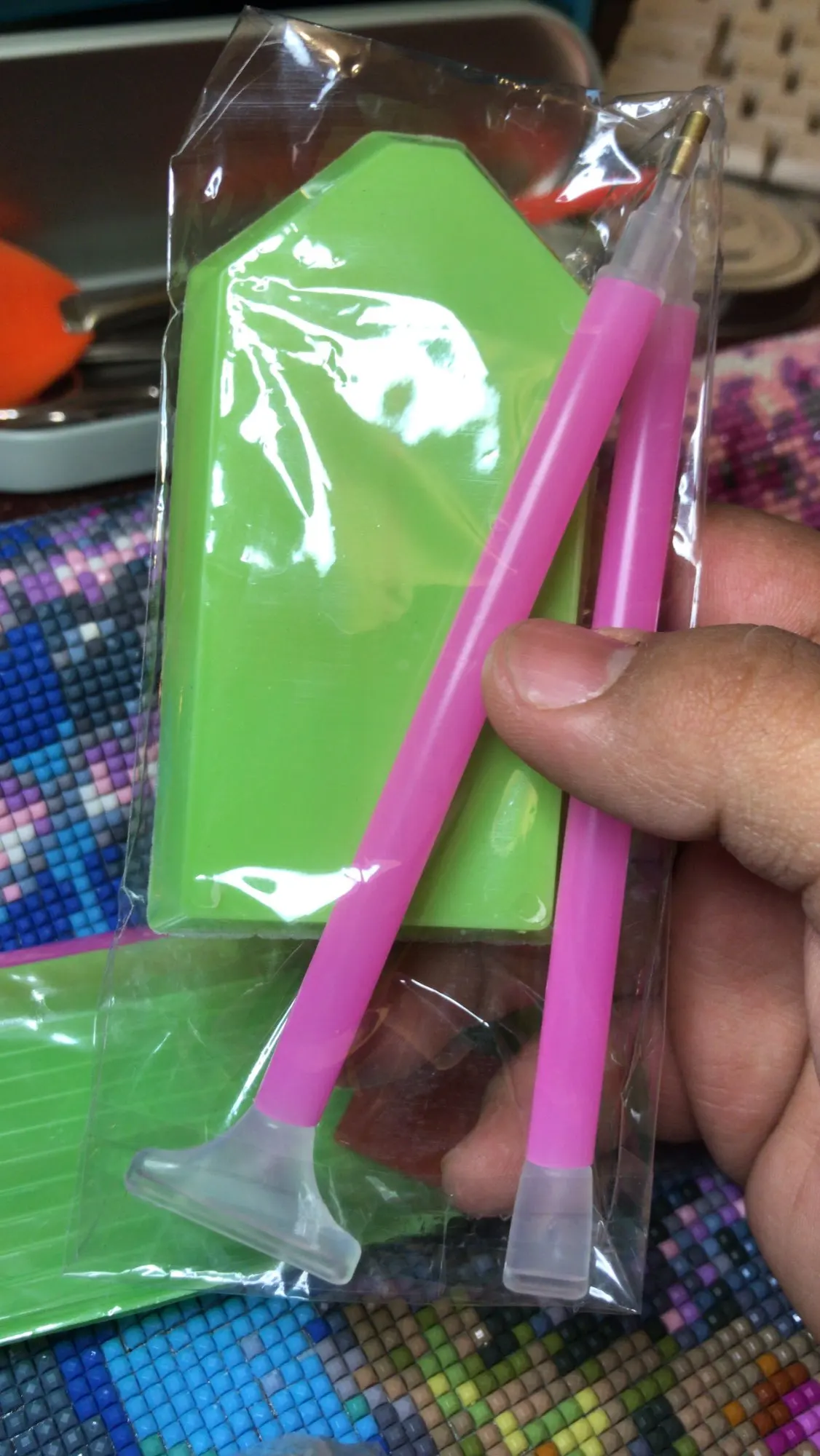 Инструмент-аппликатор, лоток и воск, чтобы легко разместить алмазы на холсте