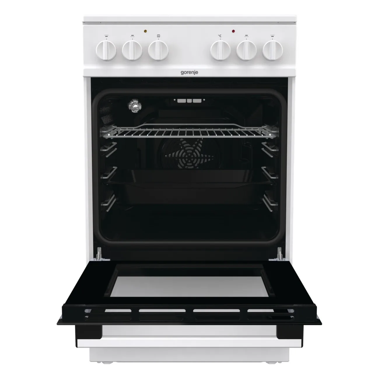 Классическая плита Gorenje EC5151WG выполнена в белом цвете и прекрасно впишется в любой современный интерьер. Благодаря технологии BigSpace духовка стала еще просторнее за счет того, что сводчатый потолок спрятан за передней верхней стенкой — это создает дополнительный объем и позволяет воздуху свободно циркулировать. При помощи функции «Быстрый нагрев» Вы можете предварительно разогреть духовку до температуры 200°С всего за 6 минут, что позволит экономить драгоценное время.