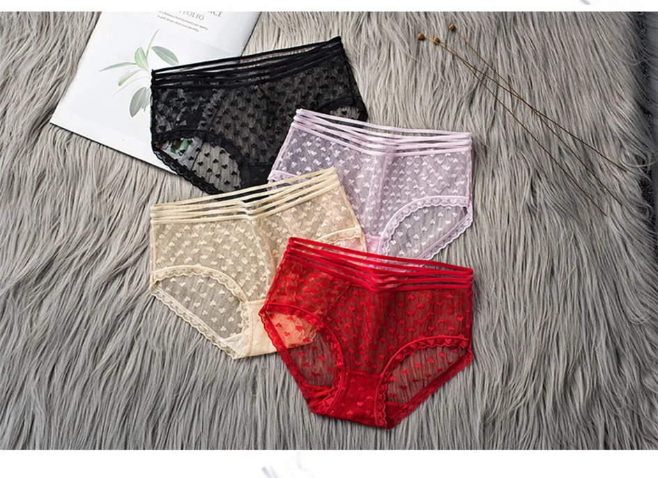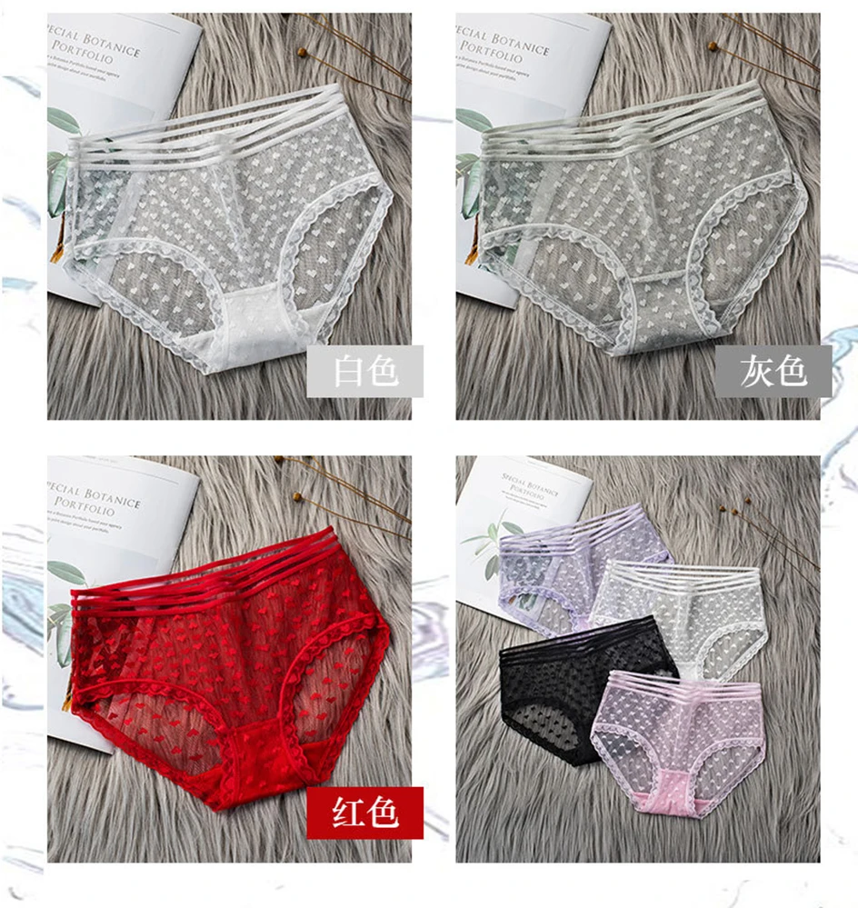 3 шт.комплект, женские прозрачные трусы с кружевом, средней посадки