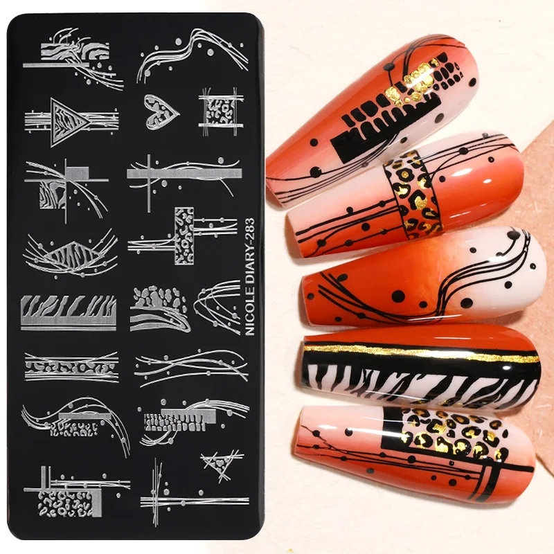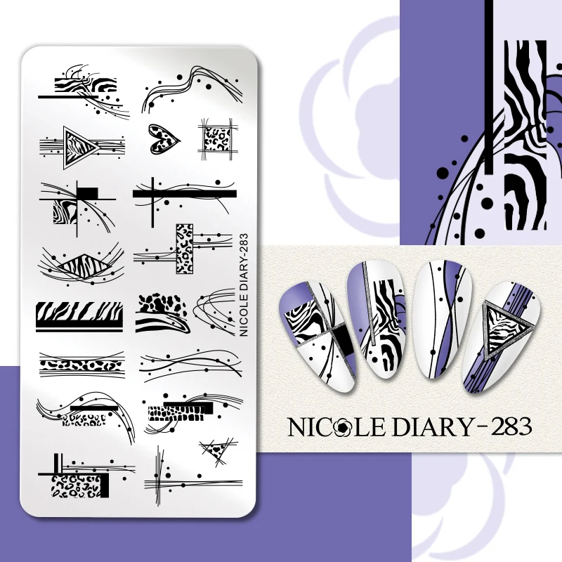Трафареты NICOLE DIARY для стемпинга ногтей Тигр Зебра леопардовый принт изображение животных Шаблоны для штампов змея Цветок Лист Трафарет для маникюра