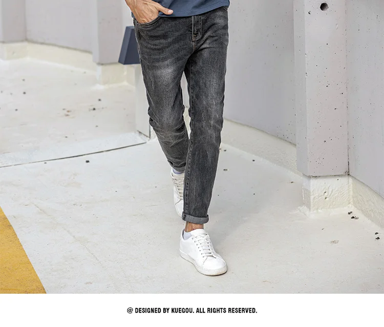 KUEGOU хлопчатобумажная одежда мужские рубашки стильное джинсовое п...