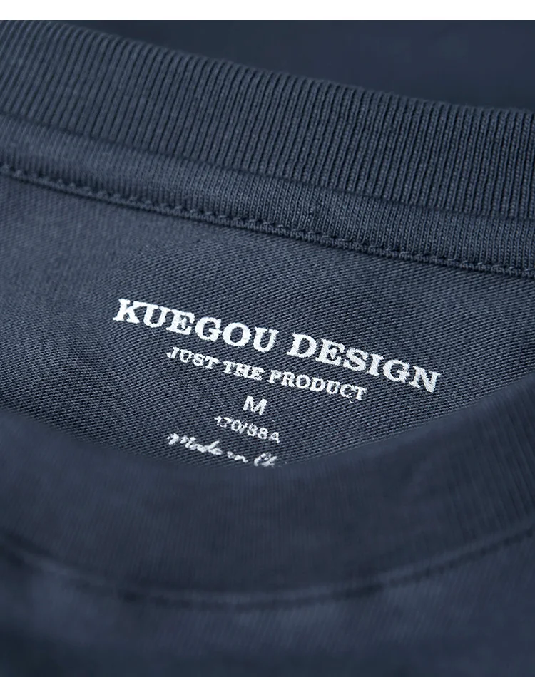 Мужская хлопковая футболка KUEGOU, летняя футболка с коротким рукав...