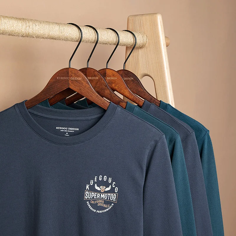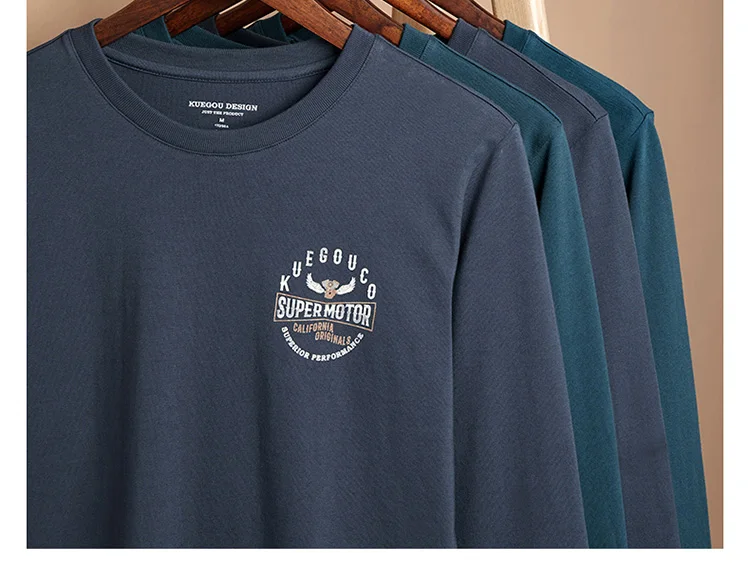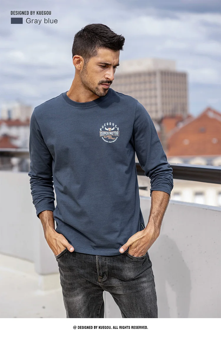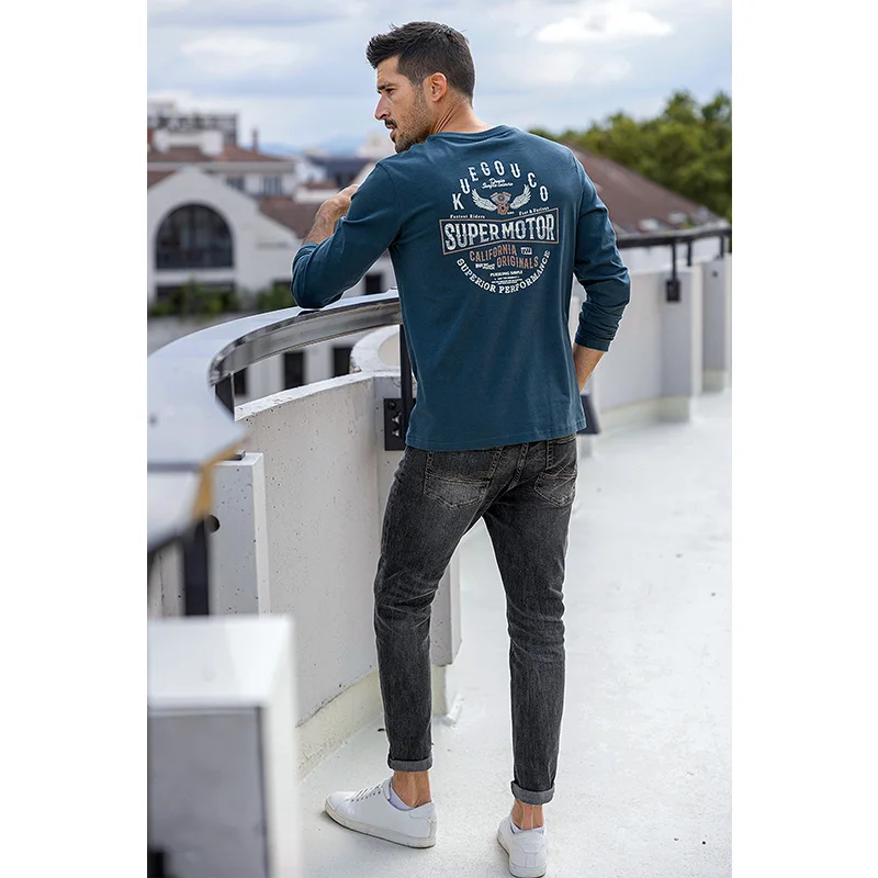 Футболка мужская с длинным рукавом KUEGOU, базовая тенниска из 100%...