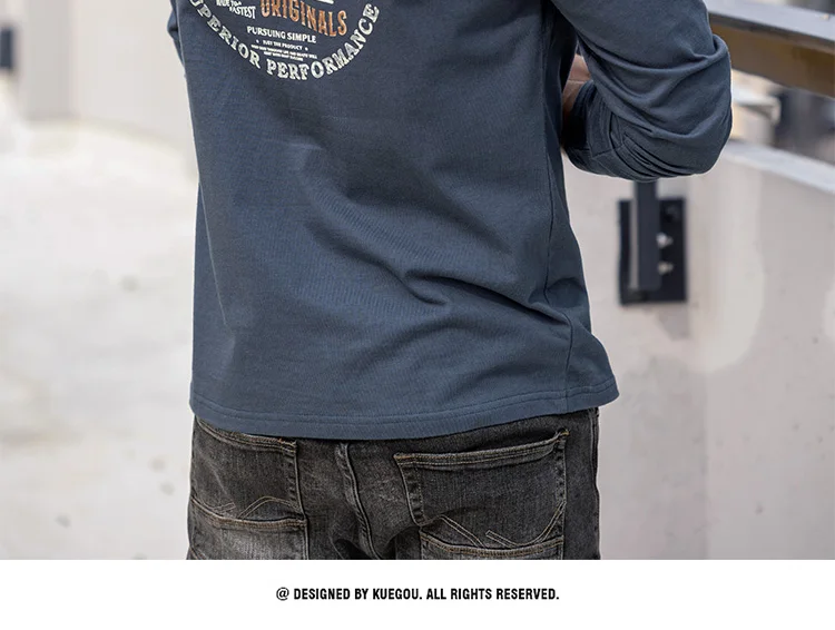 Мужская футболка с длинным рукавом KUEGOU, черная футболка с длинным рукавом, из 2022 хлопка, Весна-Осень 100%