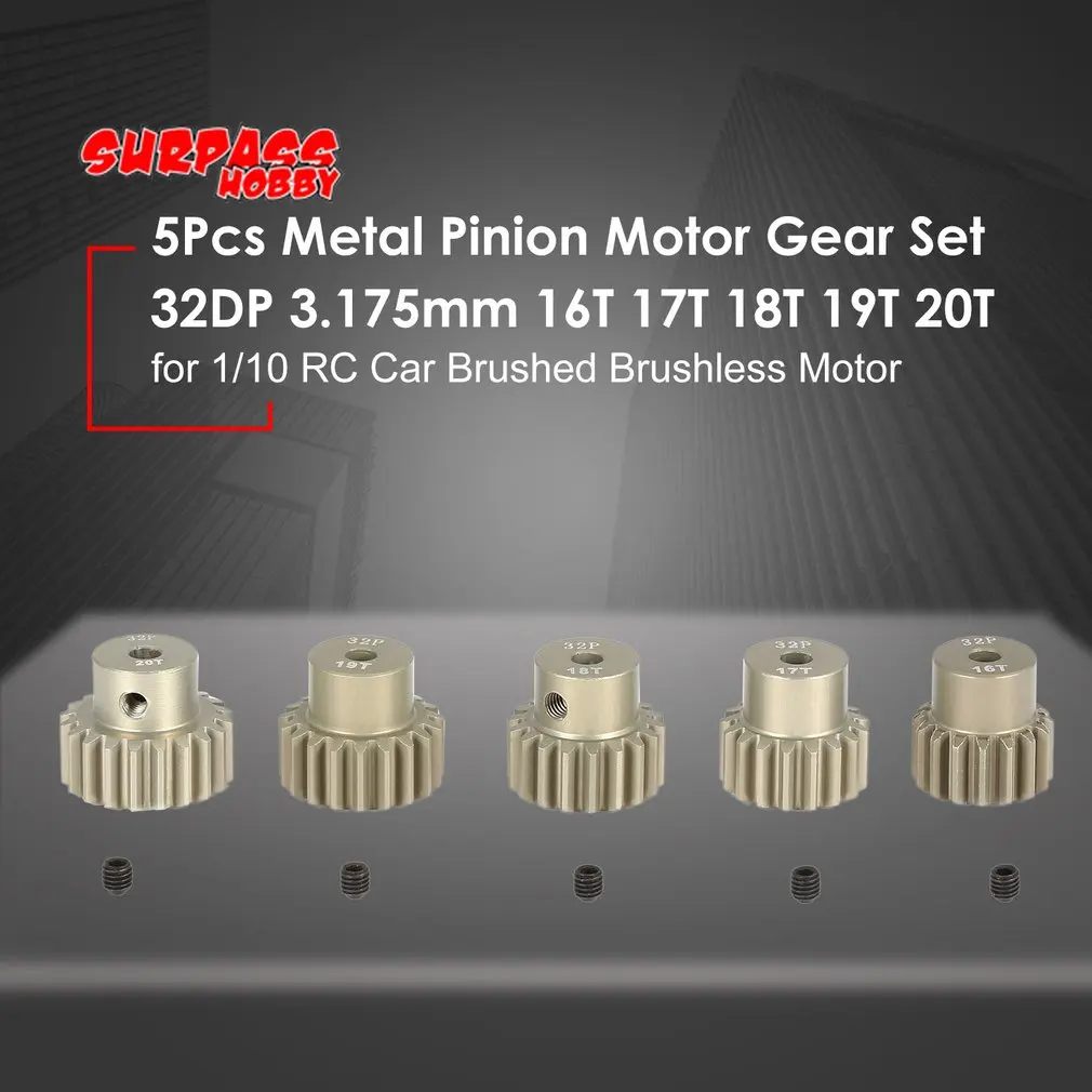 Комплект металлических шестерен двигателя SURPASS HOBBY, 5 шт., 32DP, 3,175 мм, 12T, 13T, 14T, 15T, 16T, для радиоуправляемого автомобиля, грузовика, щеточный двигатель 110
