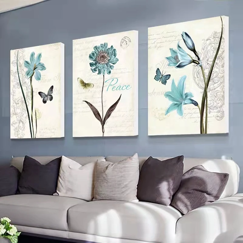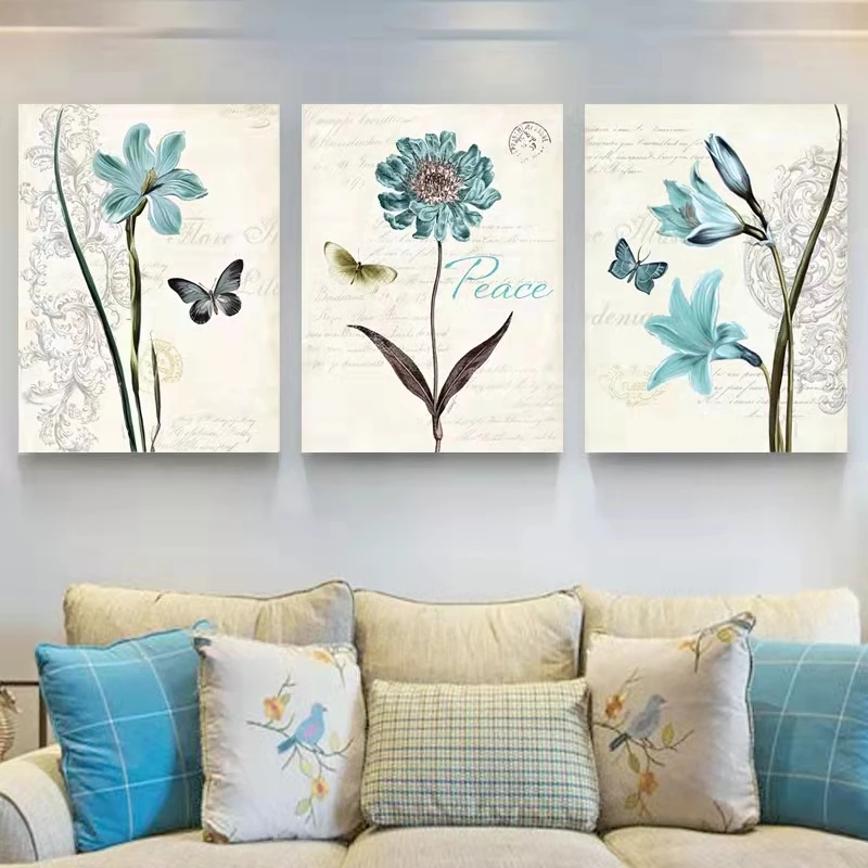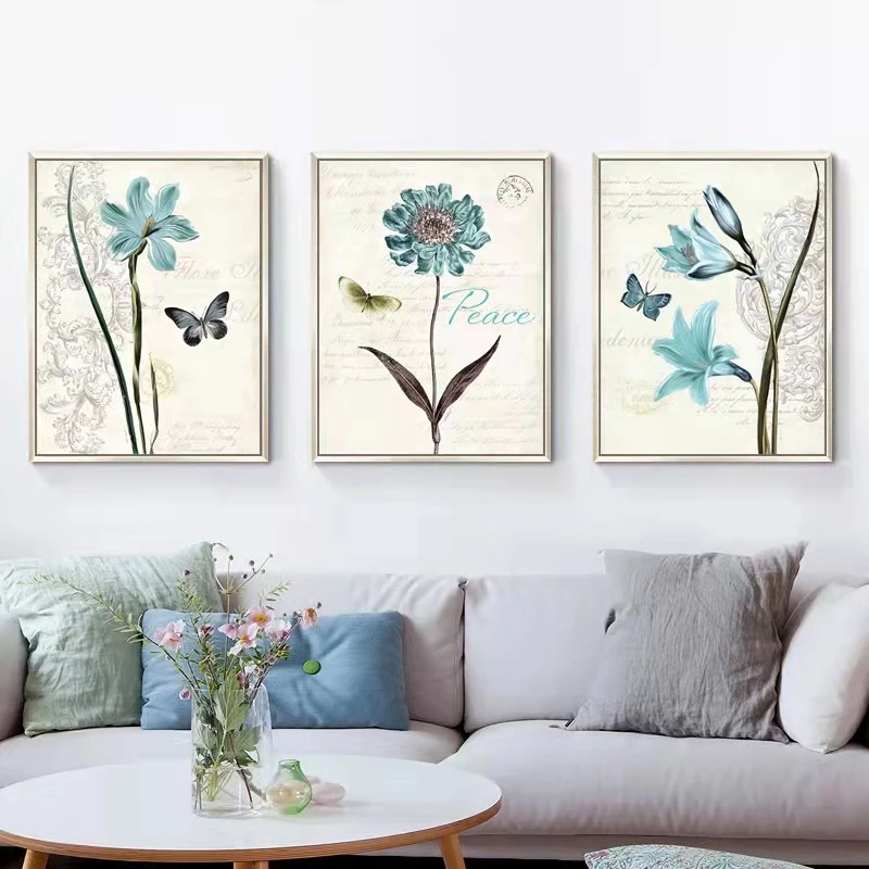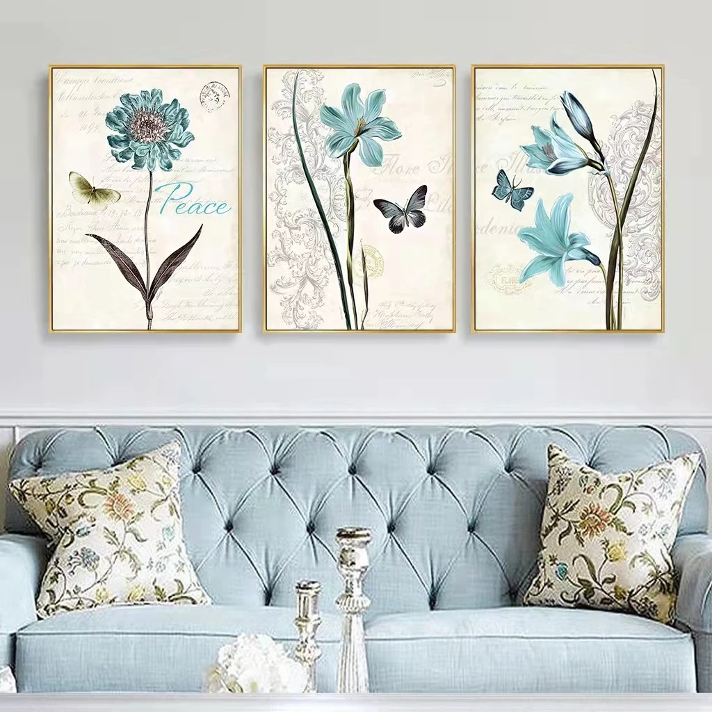 Декоративная картина в скандинавском стиле для гостиной, столовой, спальни, картина для дивана, фон для стены, цветок, Бабочка, Триптих