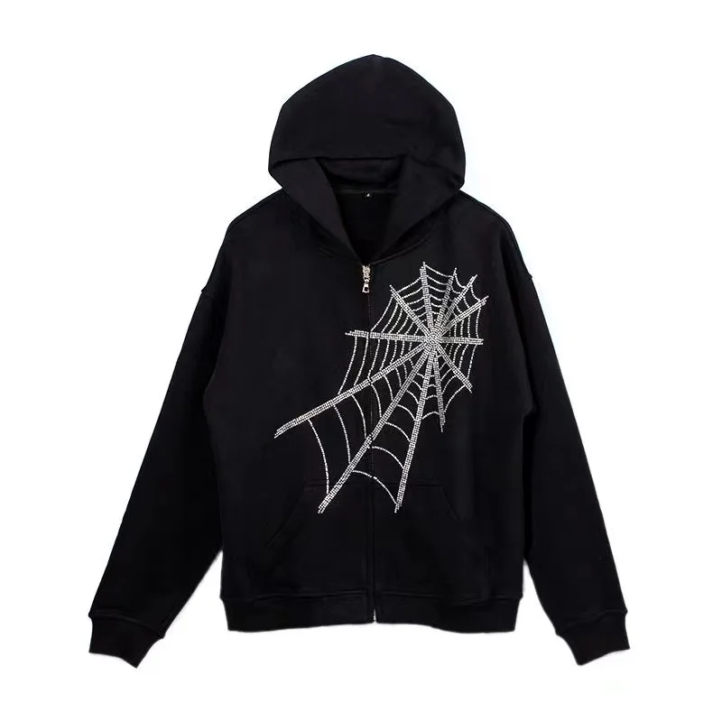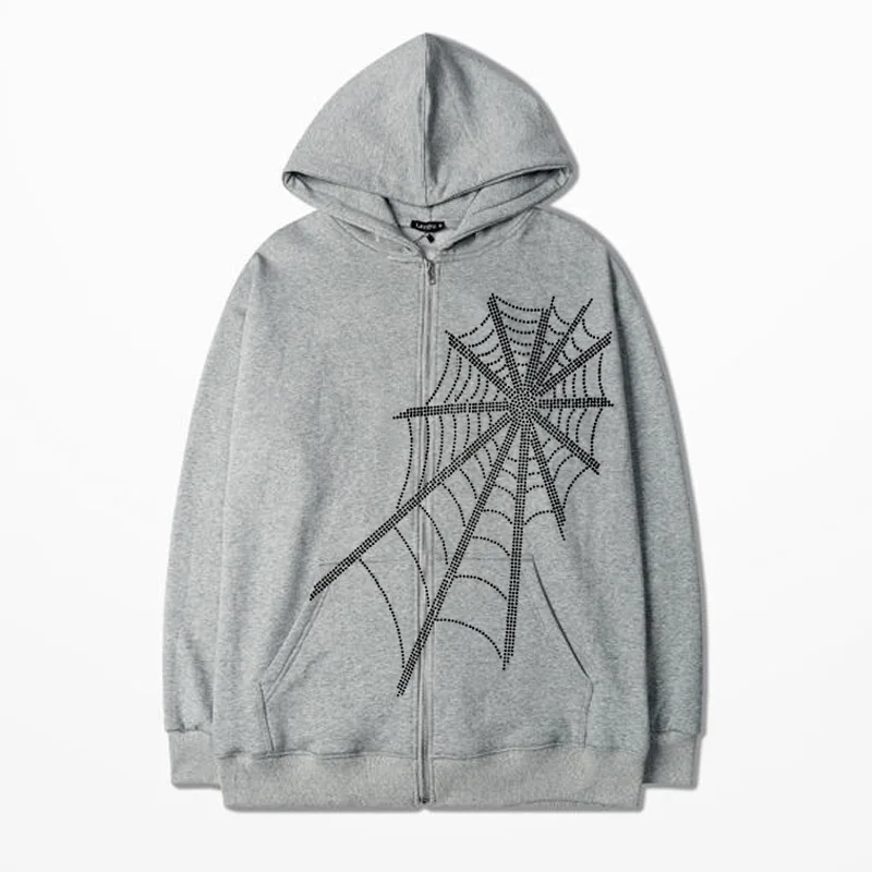 Толстовка стразы на молнии в готическом стиле, Свитшот оверсайз в стиле Харадзюку, панк, модная одежда для мужчин и женщин