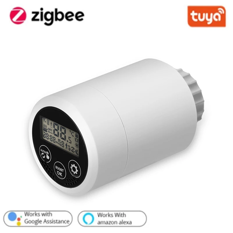 Термостат радиатора Smart Tuya ZigBee: термостат радиатора с ЖК-цифровым дисплеем и простой новой ручкой для простых настроек. Он разработан с двумя секциями аккумуляторов AA, который является специальным клапаном, использующим совместно с нагревательным радиатором для энергосберегающих. Искусственно устанавливаемая температура в помещении, в основном используется в системе напольного отопления для контроля закрытия и открытия трубы.