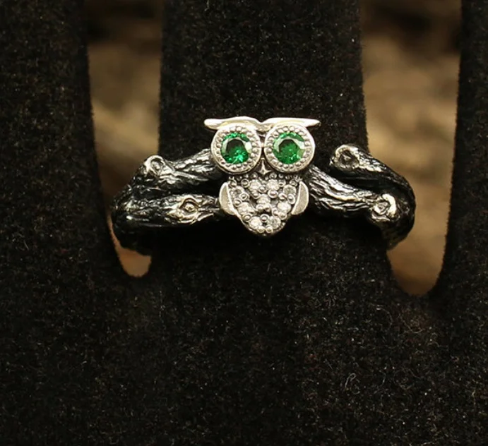 Винтажные Модные кольца для женщин Серебряное кольцо Сова на ветке натуральный изумруд драгоценный камень бриллиант обручальное кольцо для свадебной вечеринки