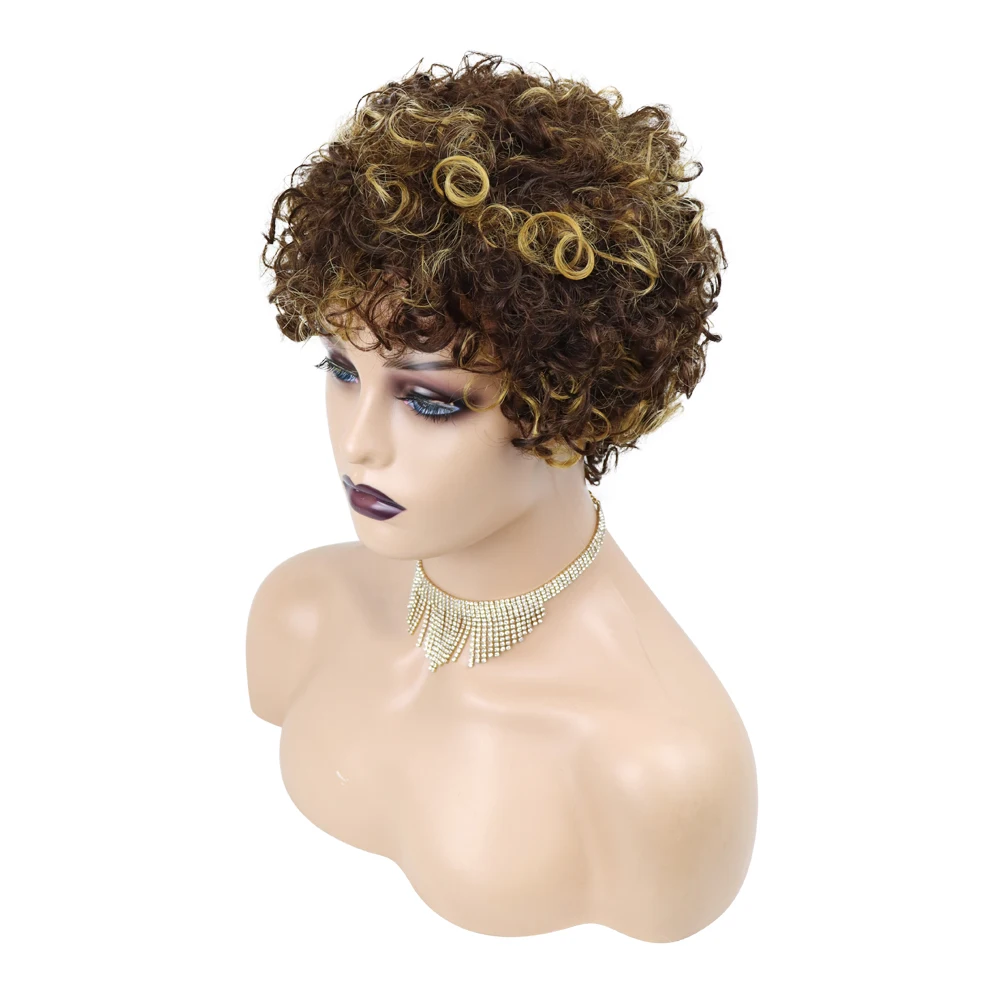 Искусственный кудрявый афро парик, бразильские волосы, Цветные Короткие парики для черных женщин, бесплатная доставка, афро кудрявые человеческие волосы H
