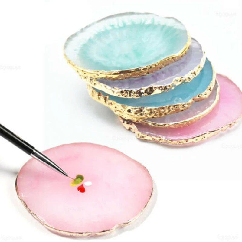 Палитра для ногтей из агата золотистого цвета с кристаллами и мрамором, пластина для рисования, японская витрина для дизайна ногтей, полка, Палетка для смешивания маникюра, инструмент