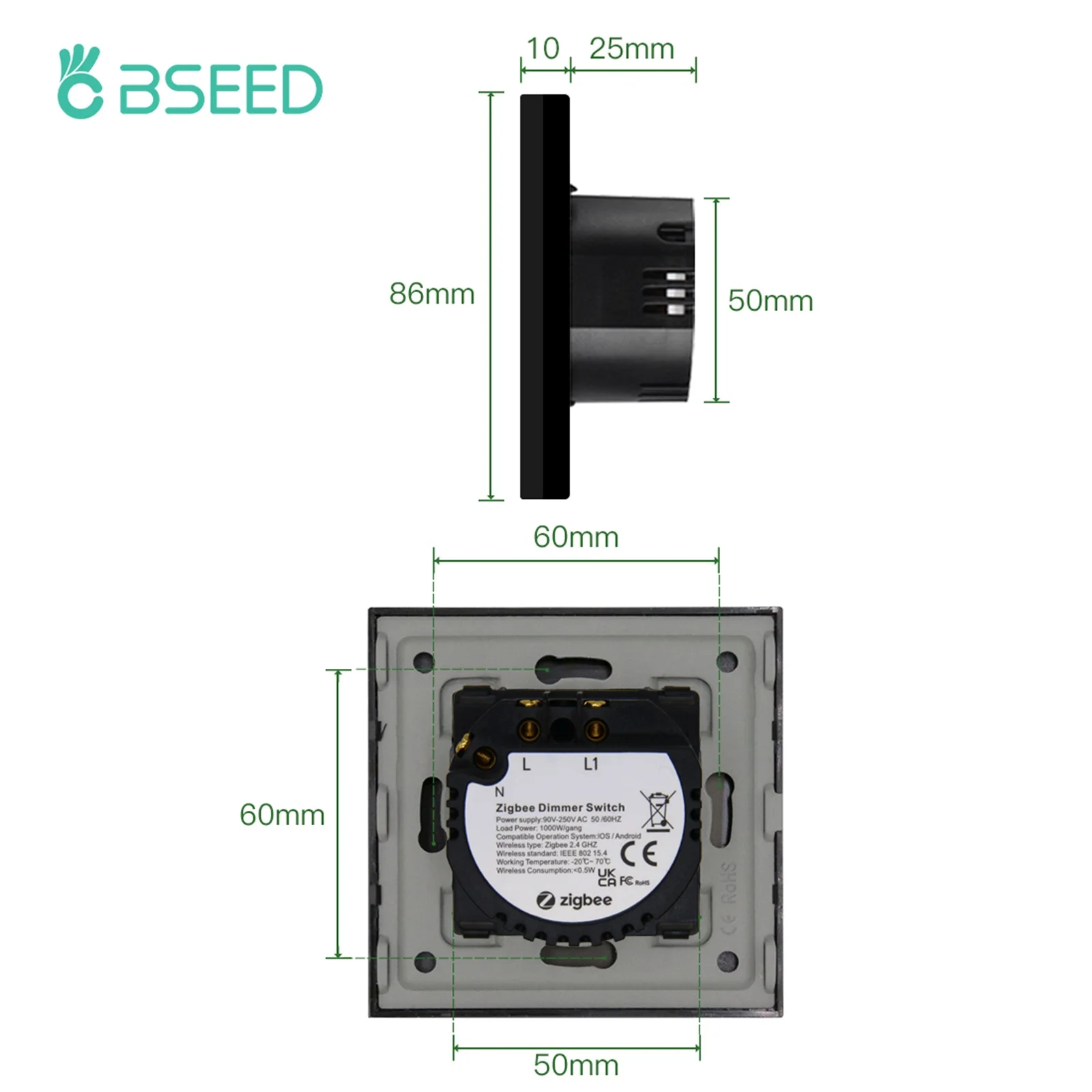 Умный диммер BSEED Zigbee, настенный сенсорный выключатель с поддержкой Google Alexa, для умного дома