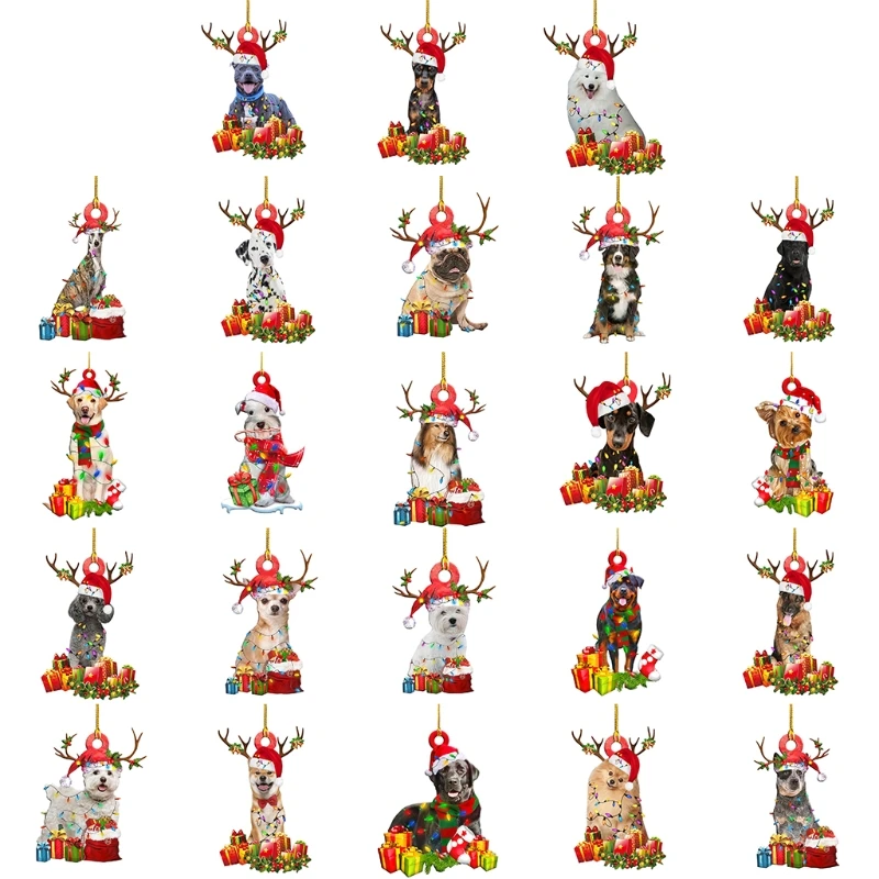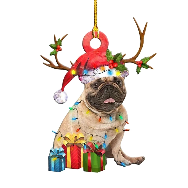 Рождественский орнамент с изображением собак деревянный Xma дерево висячий знак статуи украшения Рождество вечерние DIY Благословение кулон со щенком скульптуры