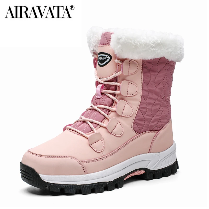 Зимние женские сапоги сохраняют тепло до середины икры зимняя обувь женские удобные кроссовки на шнуровке для дам