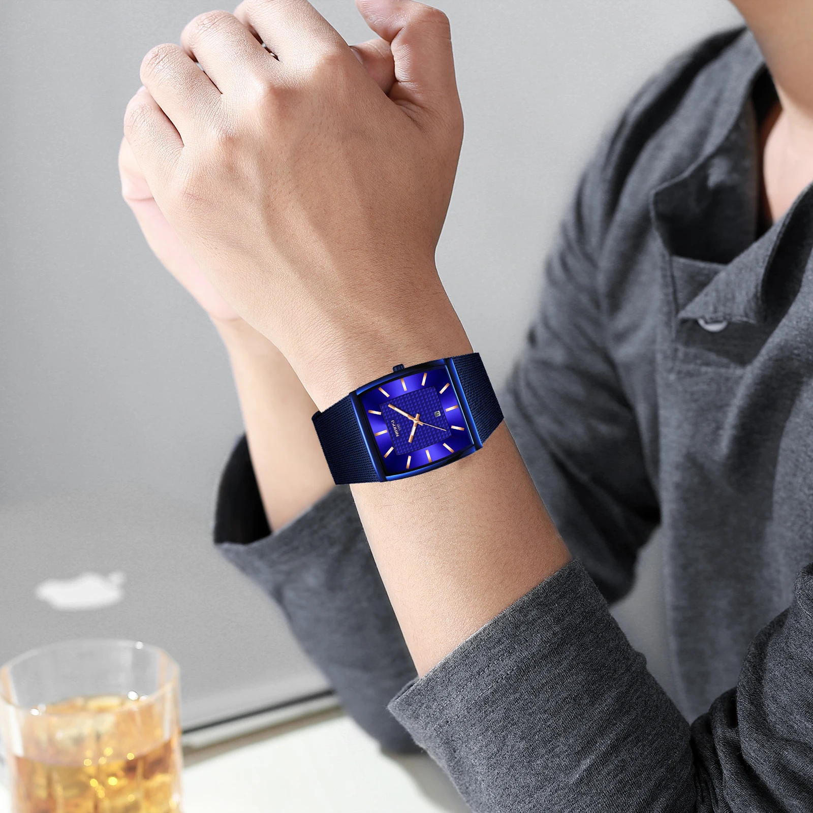 Роскошные мужские квадратные часы NIBOSI из нержавеющей стали, водонепроницаемые часы с автоматической датой, кварцевые ультратонкие наручные часы 2021, мужские часы
