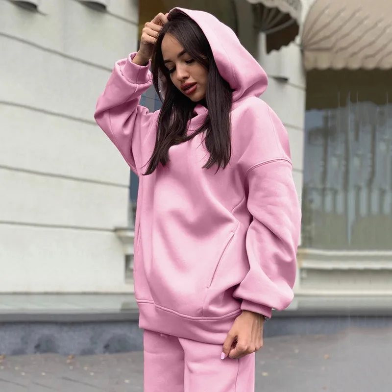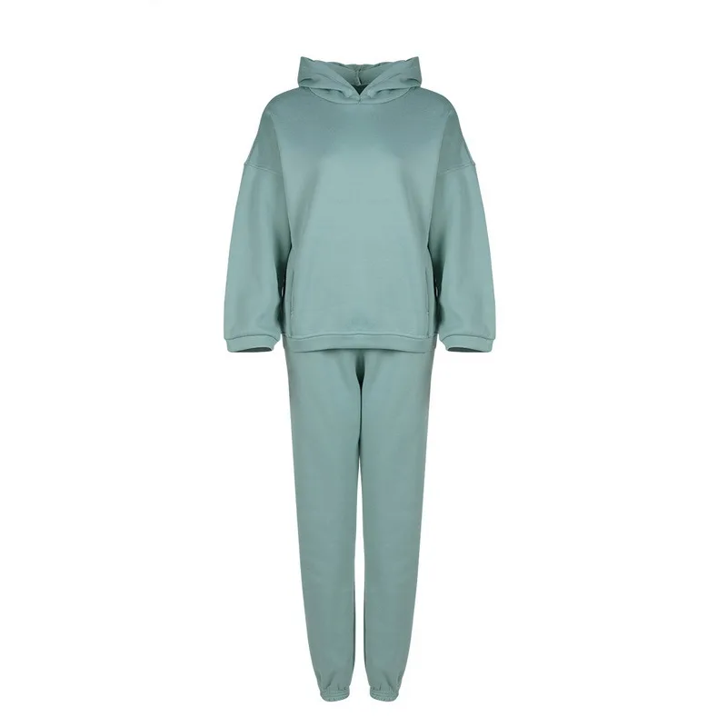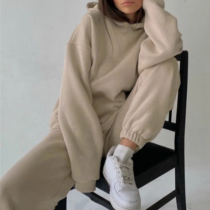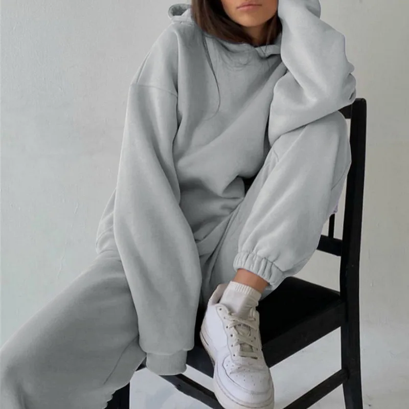 Женский спортивный костюм, однотонный белый спортивный костюм с капюшоном и штанами, повседневный костюм, осень 2021