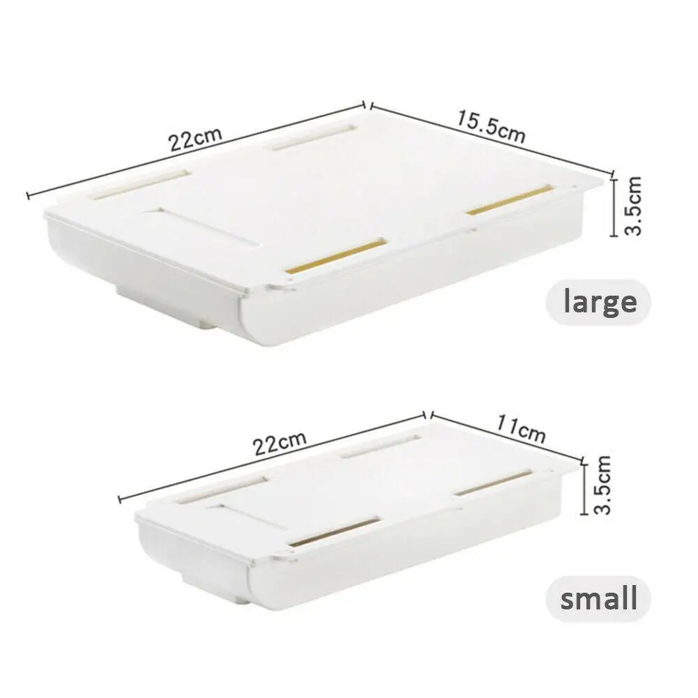 Описание:Скрытая коробка для хранения, маленькая коробка может держать много вещейРучки, линейки, компасы, бумажные полотенца, ножницы, мобильные телефоны и другие предметыКлей большой площади имеет хорошую несущую способность и не падает близко к поверхностиДва вида способов установки могут быть оснащены винтами и бесшовным клеемВместительное пространство может не только содержать канцелярские принадлежности и косметику, но и улучшать стиль.Скрытый ящик пылезащитный и пыленепроницаемый, ящик плавно тянется, и уплотнение хорошее, избегая скопления пыли в коробкеНижняя ручка предназначена для того, чтобы ее легко взять, и ее можно легко вытянутьНе маркировочный клей, легко оторвать и установитьМатериал ABS, высококачественный материал, прочный и долговечныйХарактеристики:Название продукта: ящик для храненияЦвет: белый, серыйРазмеры: 22*15,5*3,5 см (Большие размеры Размеры), 22*11*3,5 см (маленький размер Размеры)Материал: АБС-пластикПрименение: стол, офисУстановка:1. Оторвите заднюю часть бесшовного клея2. Установите ящик в соответствующее положение3. Удерживайте в течение 30 секунд вручную4. Использование после 24 часов бездействияПосылка включает в себя:1 * коробка для хранения