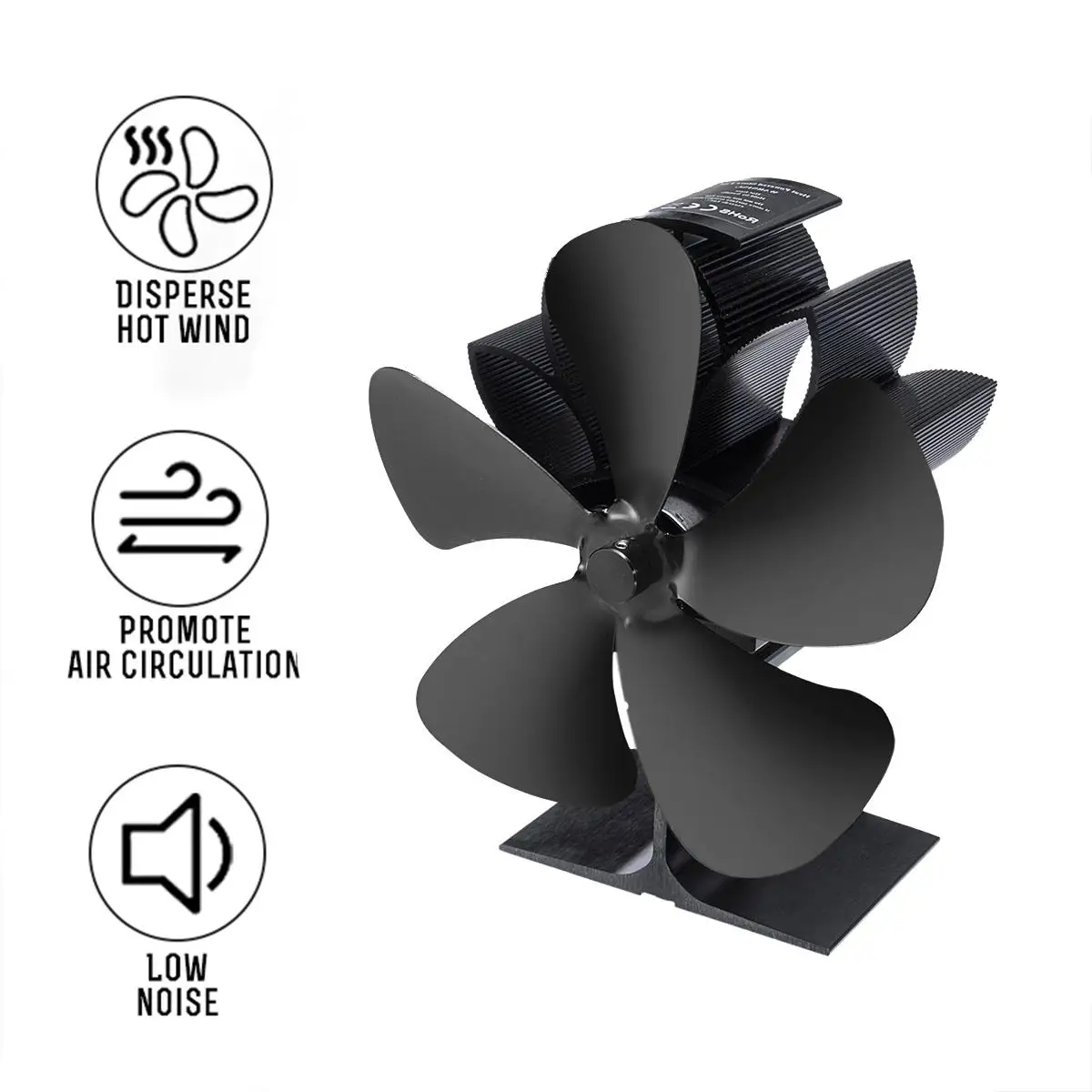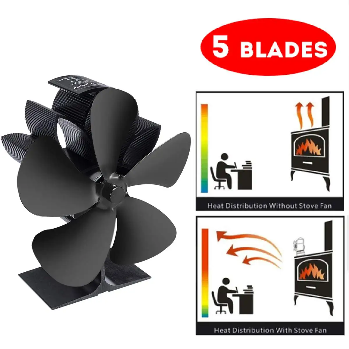 5 лезвий черный вентилятор для камина вентилятор для печи, работающ...