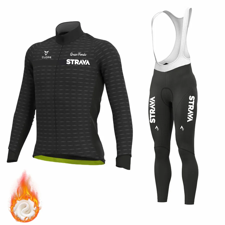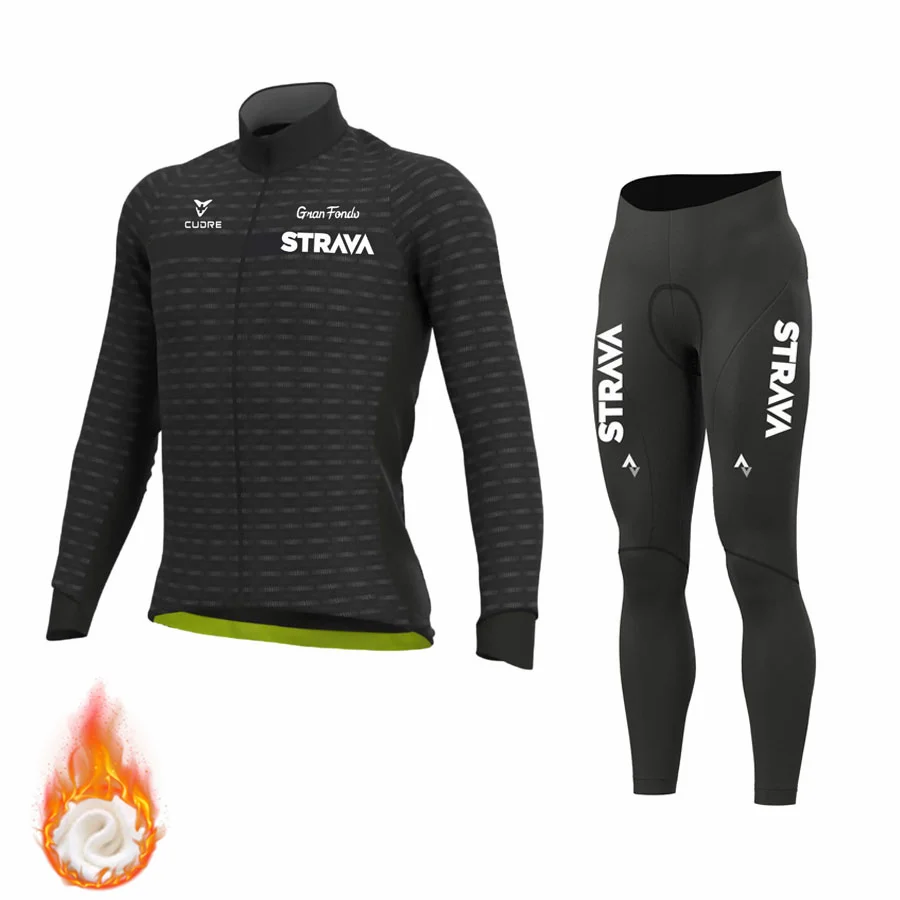 Костюм для велоспорта STRAVA, мужской, флисовый, теплый, 2022