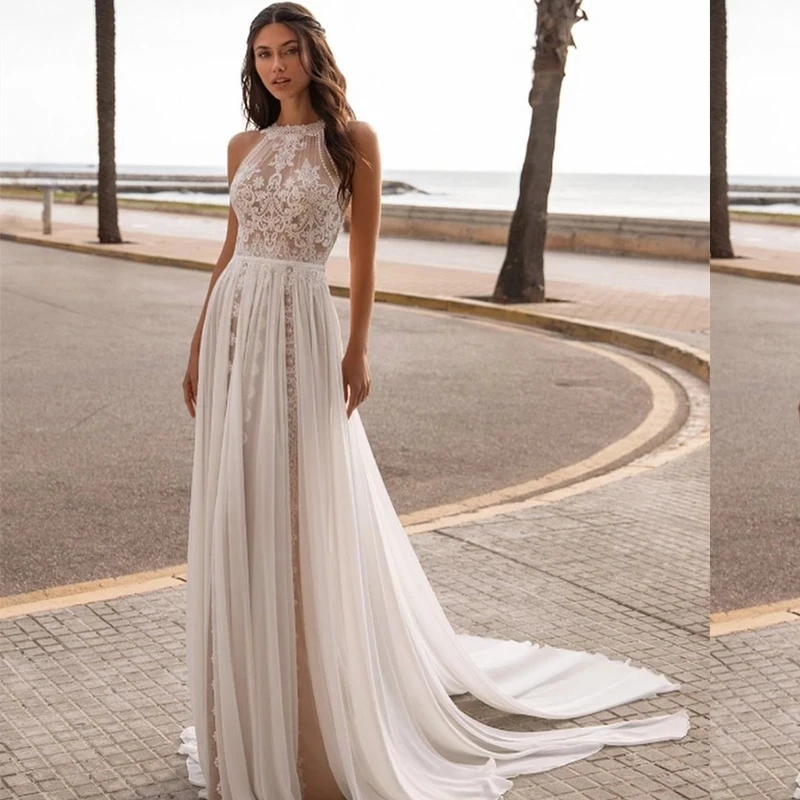 Женское винтажное свадебное платье до пола, богемное платье без рукавов, с открытой спиной и шлейфом, очаровательное платье с низкой спиной, 2022