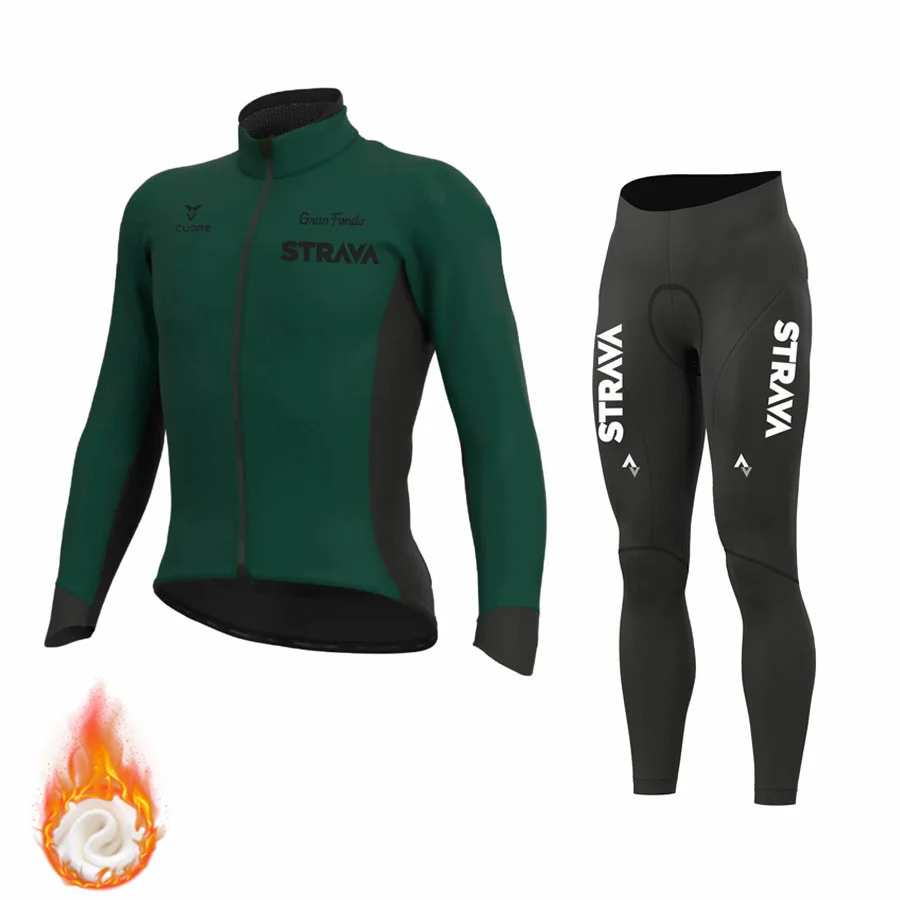 Костюм для велоспорта STRAVA, мужской, флисовый, теплый, 2022