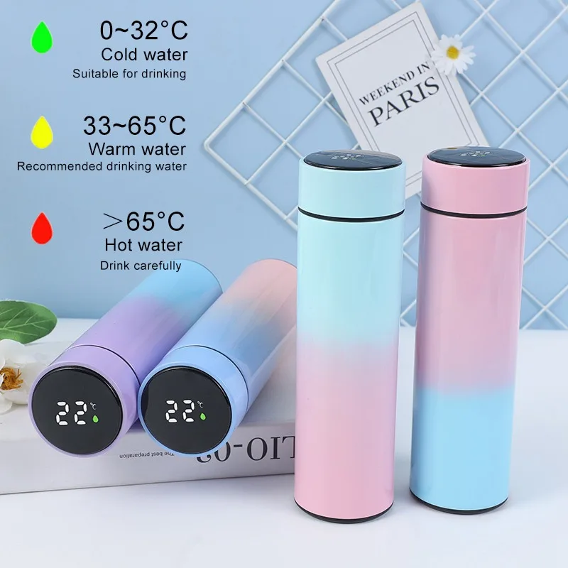 Особенности:<Светодиодный дисплей температуры: Эта бутылка для воды имеет светодиодный Интеллектуальный температурный дисплей в верхней части бутылки, который не требует изменения батареи. Это примерно. 3 + лет использования. Тепло каждого момента вы можете увидеть, просто мягко прикоснувшись к верхней части крышки бутылки. Нажмите на верхнюю часть бутылки мягко, крышка может показать температуру воды внутри бутылки воды немедленно, что может избежать смущения при сжигании рта.<Изолированная бутылка для воды: Эта бутылка для воды из нержавеющей стали имеет изоляционную стену, которая сохраняет температуру горячей и холодной.<Материал хорошего качества: Изготовлен из внутренней нержавеющей стали 304 и нержавеющей стали 201 наружной, антикоррозийной и нетоксичной.<Герметичная крышка: Герметичная крышка предназначена для предотвращения скольжения и проливания воды внутри.<Портативный: бутылка для воды объемом 500 мл подходит для большинства держателей чашек и легко помещается в сумку для путешествий. Он легкий и компактный, он не занимает слишком много места.