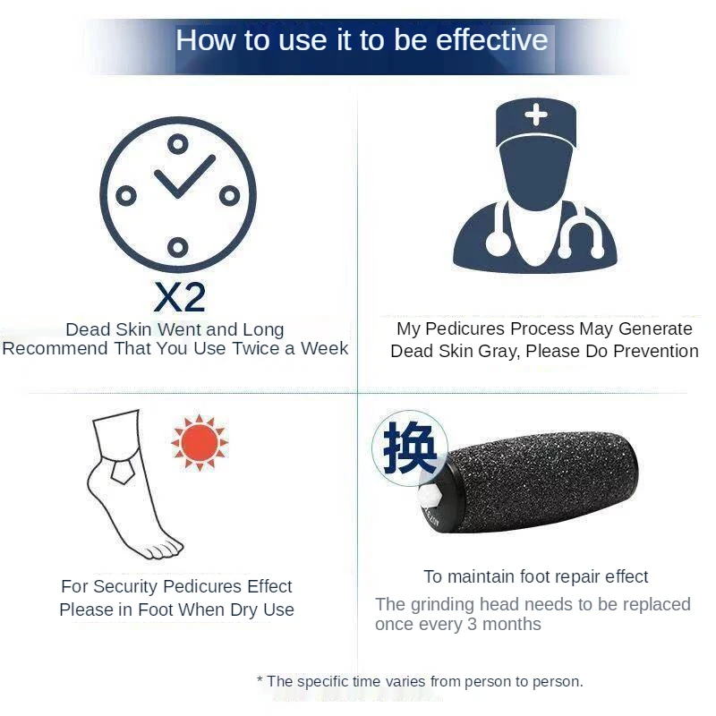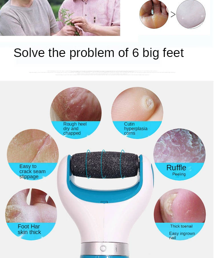 Электрическая ножная шлифовальная машина быстро поворачивает барабан, чтобы легко удалить грубую омертвевшую кожу и мозоли ног, подвергая мягкой коже.