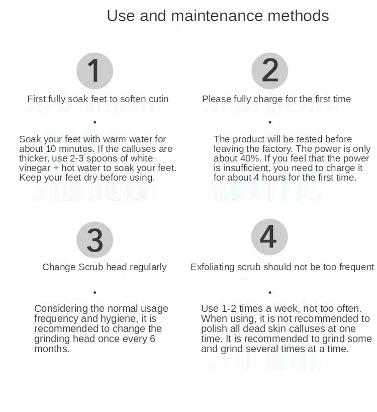 Функция мытья скраба является более чистой и гигиеничной. После использования шлифовальную головку можно мыть непосредственно водой (корпус Точилки для ног не является водонепроницаемым, после использования тело Точилки для ног аккуратно протирается полотенцем)