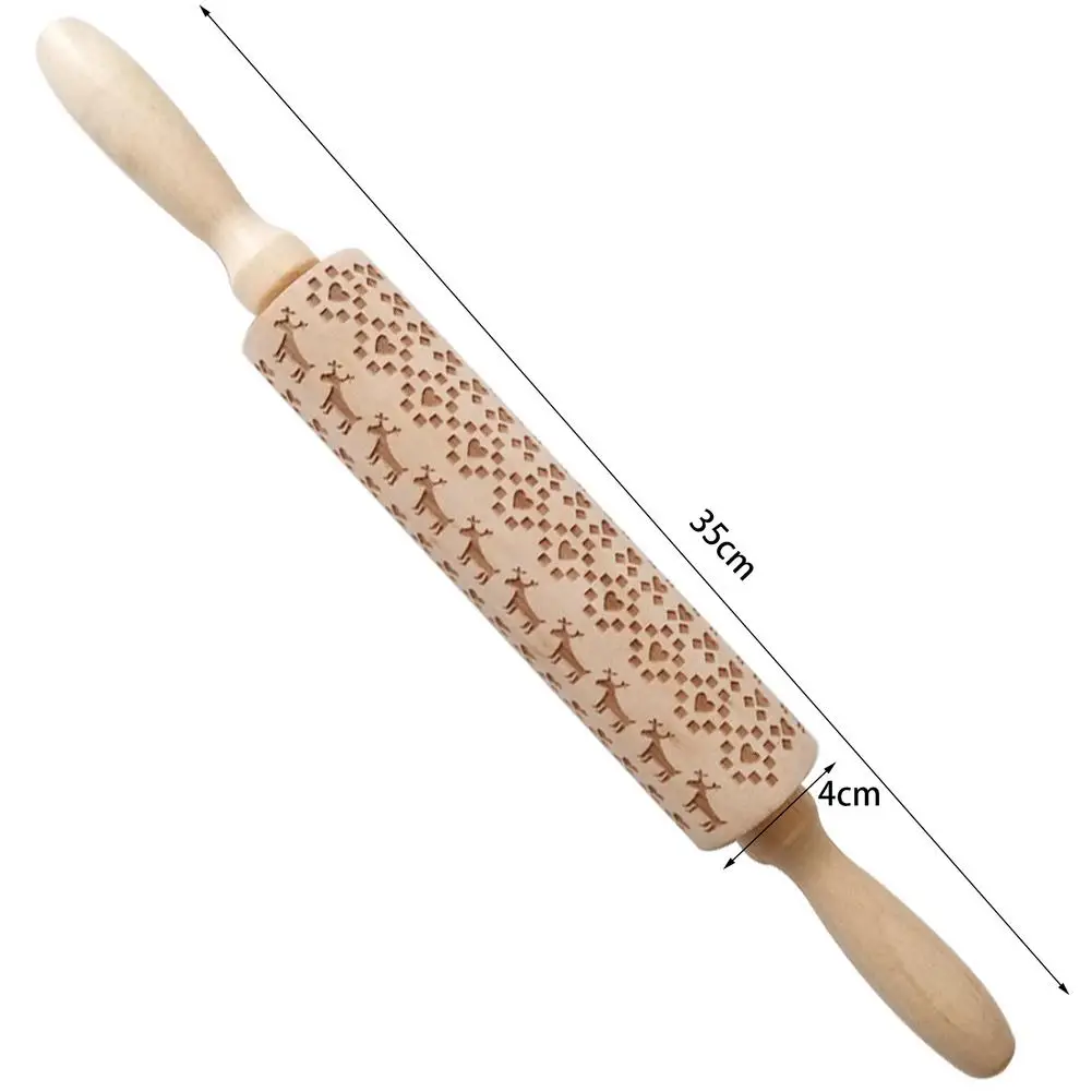 Деревянная Скалка с рождественским принтом, резьба по дереву, резьб...