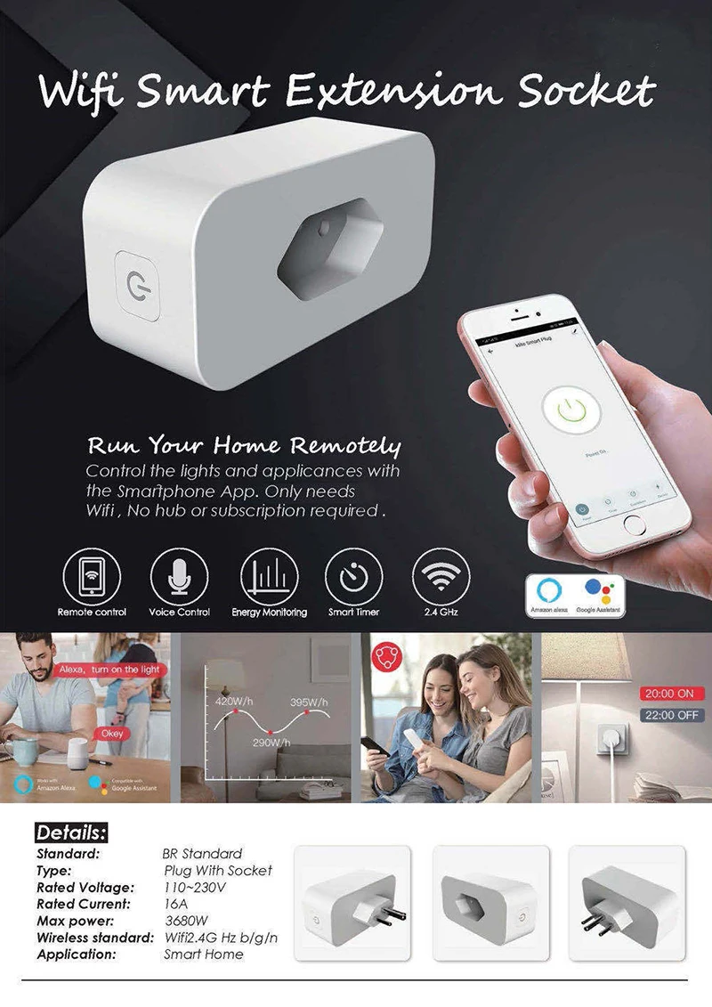 Умная розетка с Wi-Fi, 16 А, с монитором питания