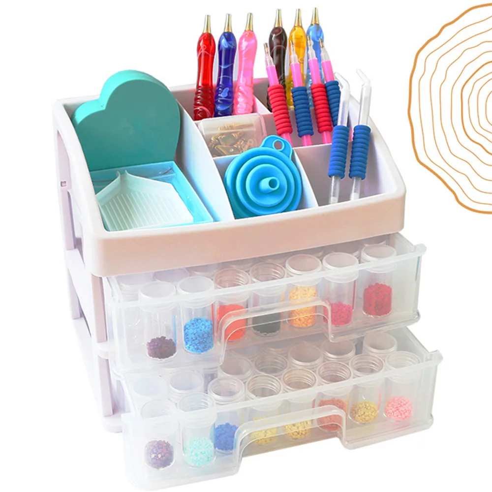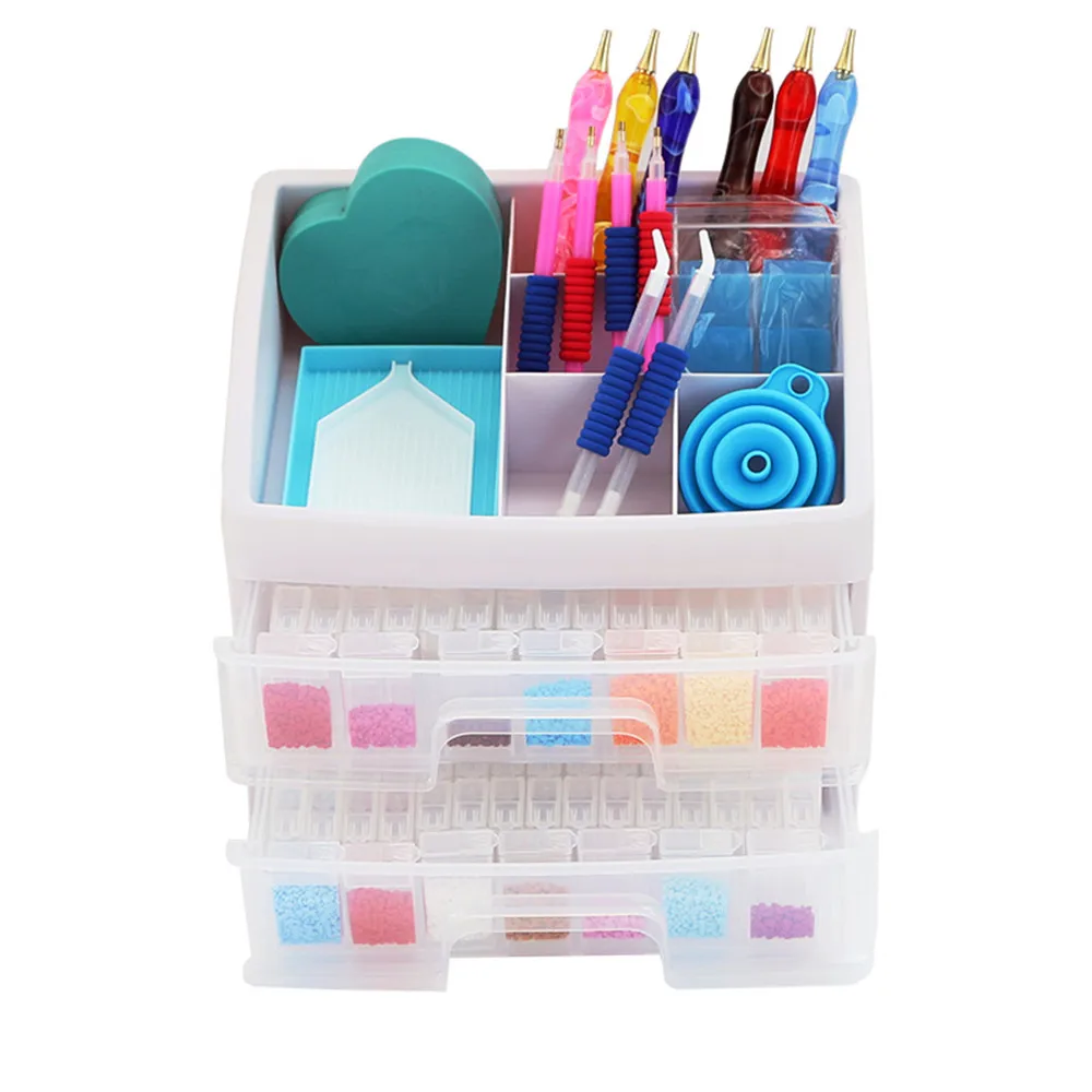 Ящик для хранения с выдвижными ящиками для алмазной живописи, многофункциональный набор инструментов сделай сам, Квадратная бутылка, круглая бутылка, Многоуровневая функциональная коробка с алмазами