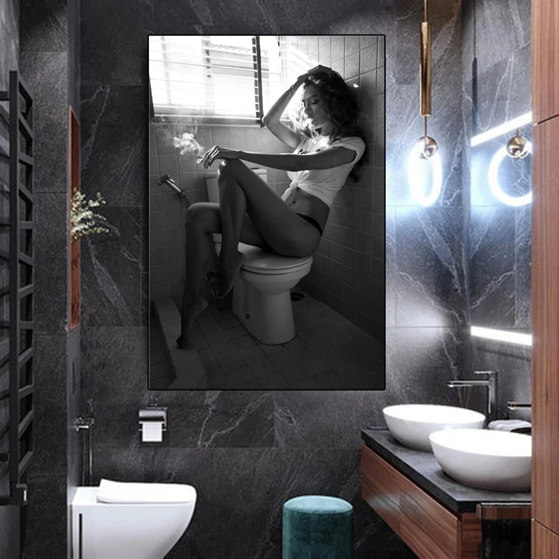 Нордическая современная картина Сексуальная курительная красота черно-белая Художественная Картина на холсте плакаты печать Настенная картина для декора туалета квадраты icon star icon star icon star icon star icon star