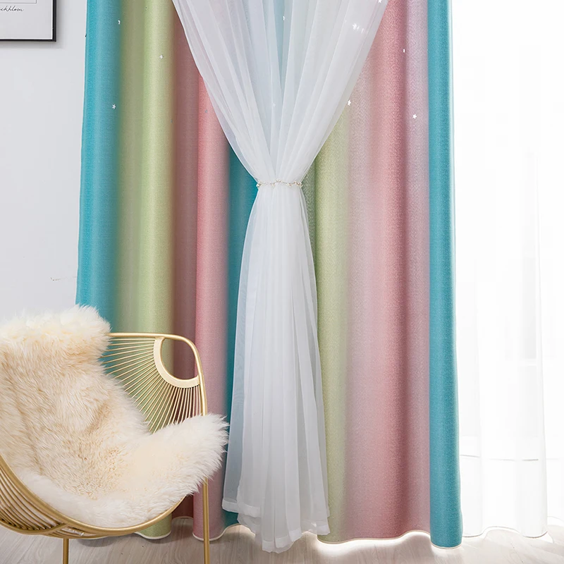 Полые Звездные прозрачные Занавески радужного цвета, оконные занавески для девочек, детские зеркальные занавески, украшение для дома