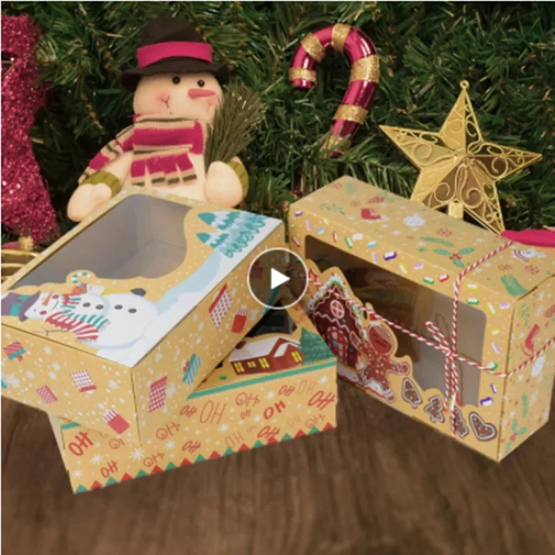 12 шт. Рождественская коробка для печенья, подарочные коробки из крафт-бумаги для конфет, пакеты, упаковочная коробка для еды, рождественский подарок для детей, новый год 2022