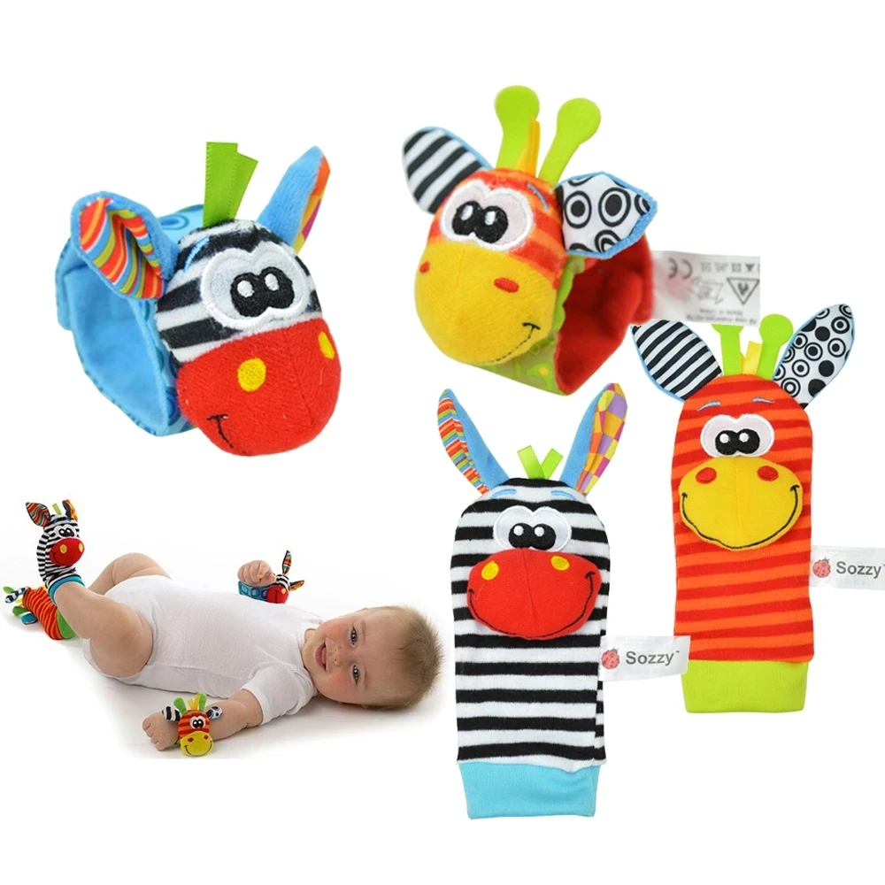 Детские носки погремуш, развивающие игрушки-погремушки, колокольчики с животными, ремешок на запястье, милый мультяшный рисунок для новорожденных, погремуш