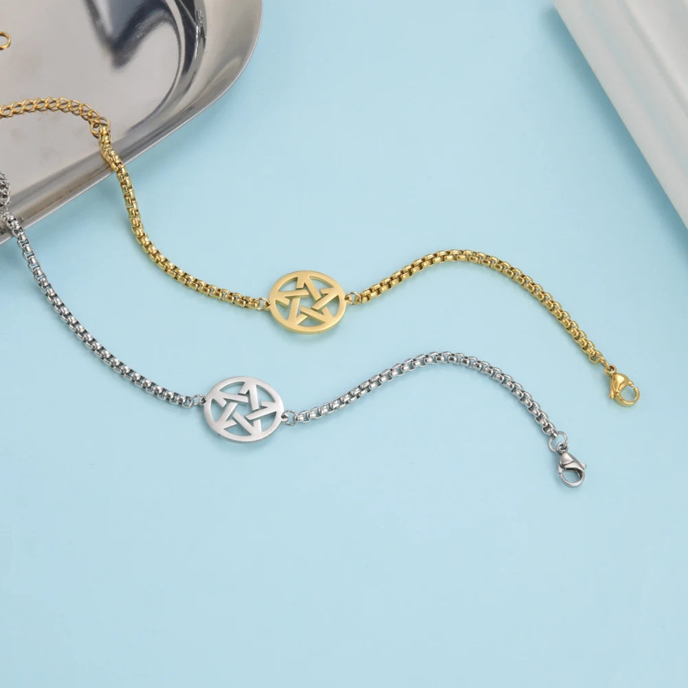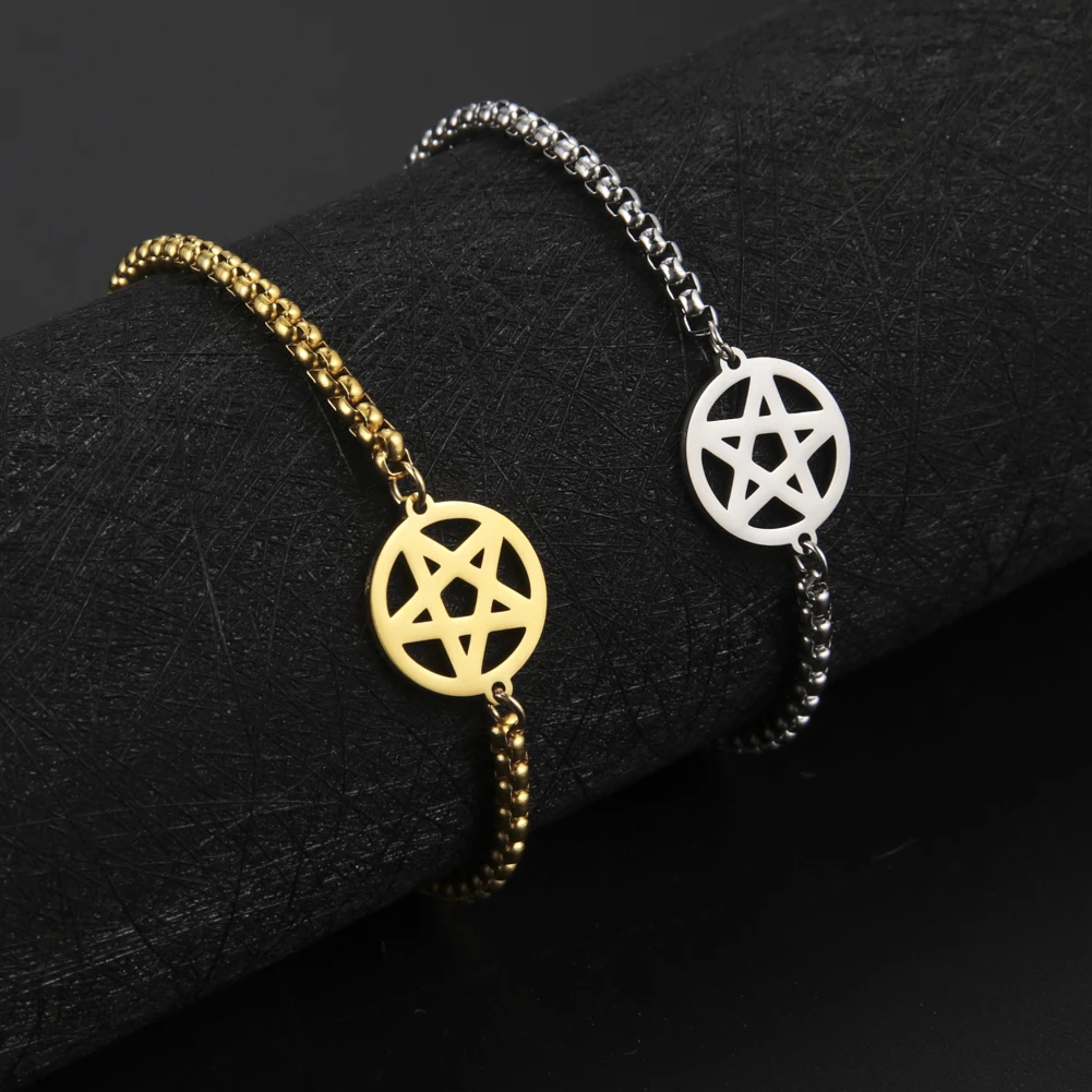 Skyrim полый звезда пентаграмма Пара Браслеты на руку для женщин мужчин ювелирные изделия из нержавеющей стали золотой цвет коробка цепи браслеты подарок