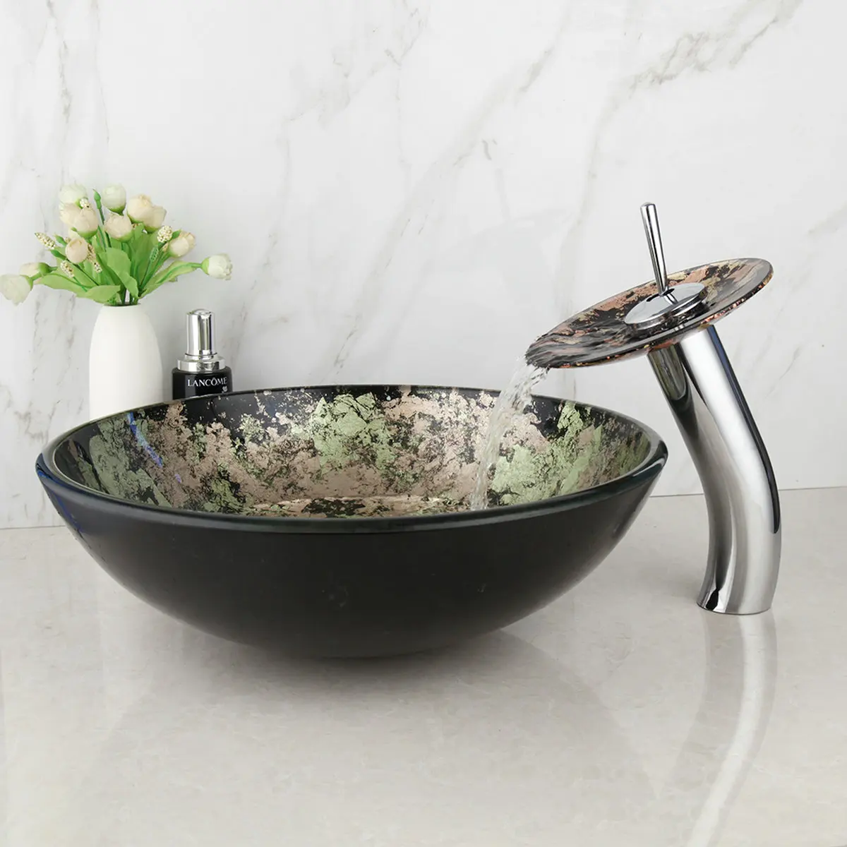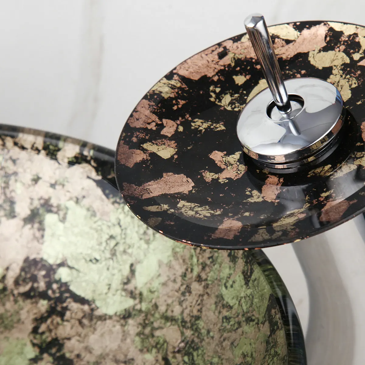 Элегантный европейский дизайн современного искусства Роскошное объемное творение Высококачественная конструкция из закаленного стекла Над установкой счетчика Хромированный всплывающий слив включаетЧто такоеВ комплекте: