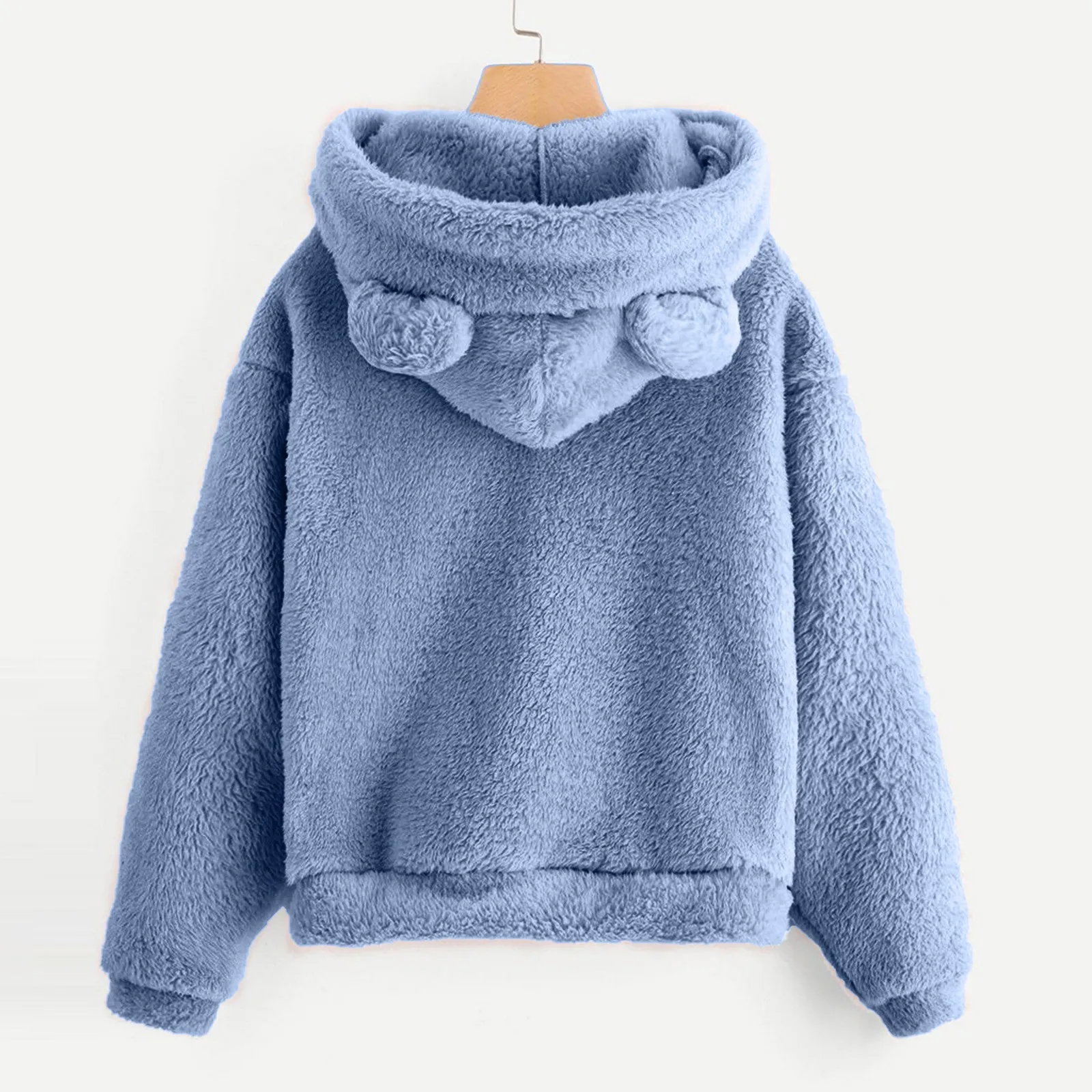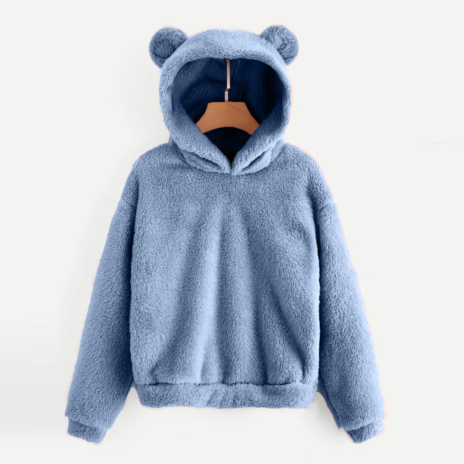 Пушистые толстовки, Женский свитшот, милая шапка с ушками медведя, теплый пуловер на осень и зиму, верхняя одежда с длинным рукавом, флисовое пальто Moletom, новинка