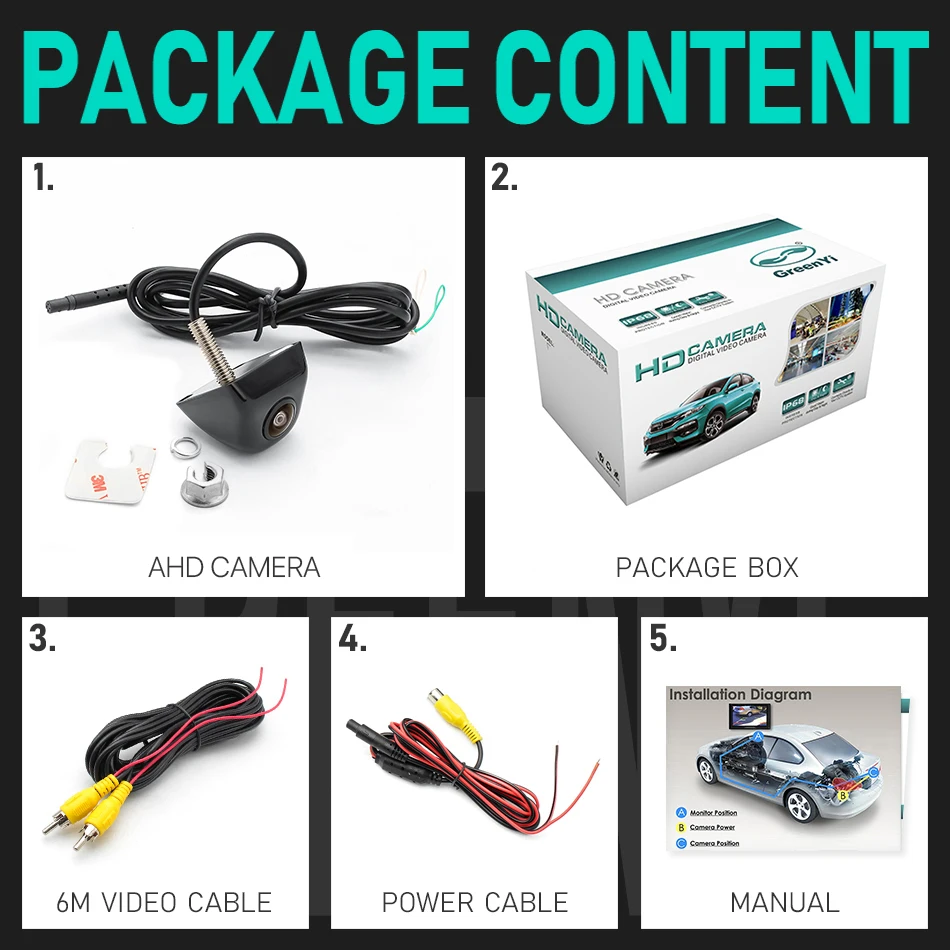 1 камера AHD1 х 6 м видео кабель1x1,5 м Мощность кабель1 x Self-винт стук1 x регулировка угла