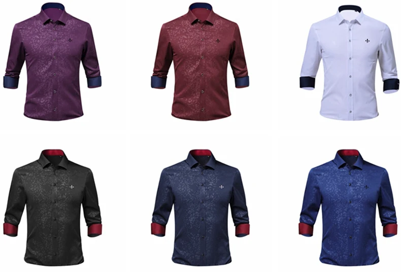 Модная жаккардовая рубашка с бесплатной глажкой, мужская рубашка с длинным рукавом, приталенная рубашка, мужская одежда с цветочным принтом