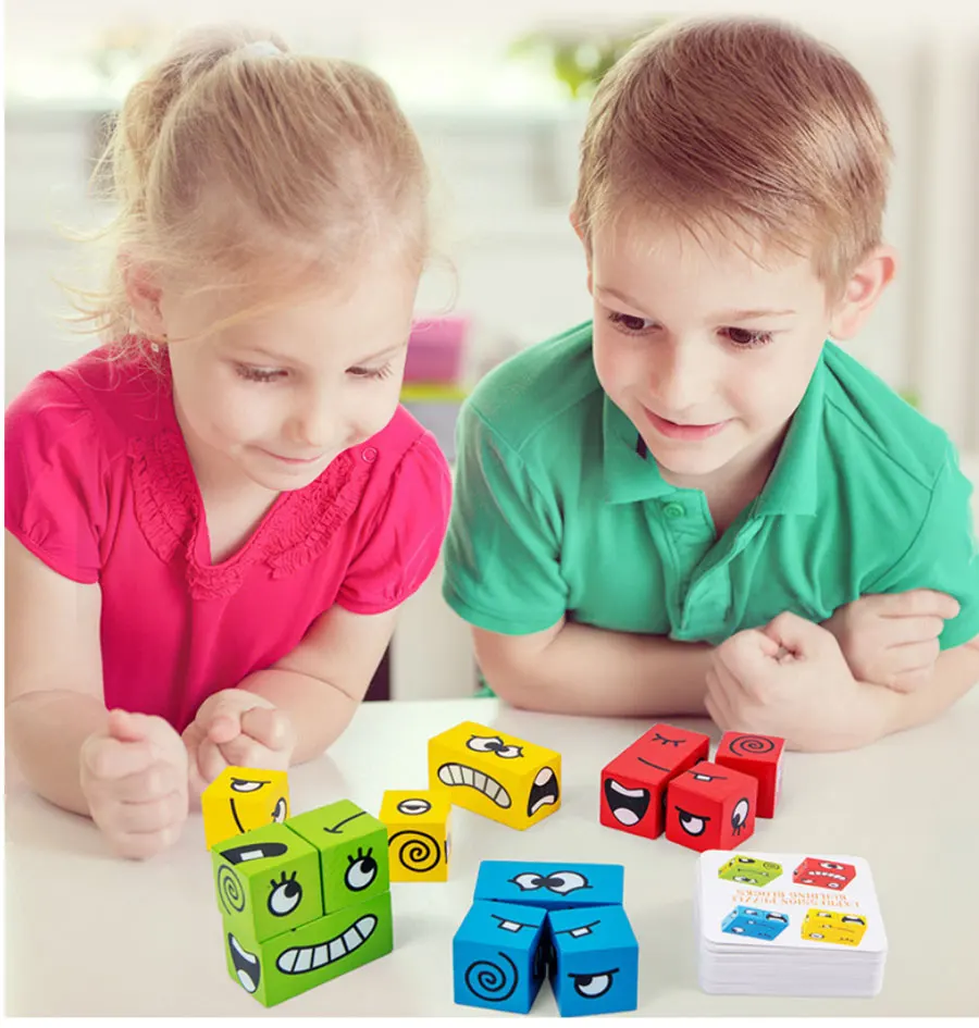 Деревянная головоломка-конструктор совпадающие эмоции, игрушки-куби...