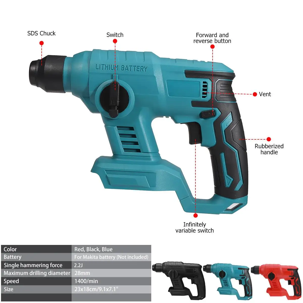 Перезаряжаемый беспроводной электрический Ударный Молоток, электрическая Ударная дрель, перфоратор без батареи и чехол, электроинструменты для Makita, батарея 18 в